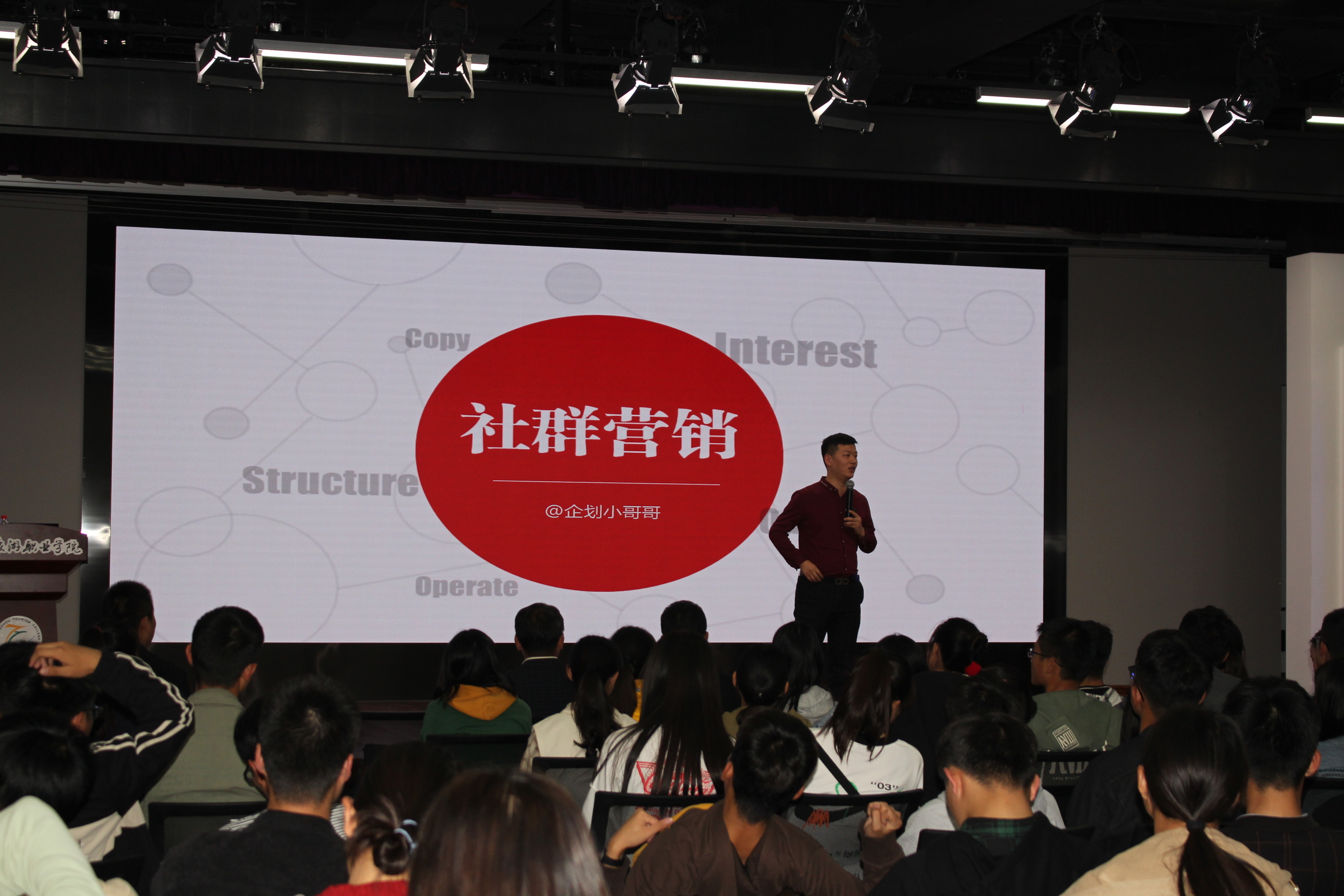 授课导师由中社儿童安全科技基金秘书长、北京安盟公益发展中心理事长张永将和曾荣获“全国大学生创业标兵”称号的职场新贵总经理赵克隆担任主讲嘉宾。张永将理事长首先为大家做了题为《大学生创业如何做好企业定位与传播》的讲座,跟大家分享了大学生创业过程中经常碰到的一些难题、困惑以及应对技巧。紧接着是赵克隆总经理做的题为《社群营销》的讲座,他从营销技巧出发,为大家解析了企业营销的一种新兴模式“社群营销”。两位老师以丰富的理论知识结合详实的案例、灵动的语言为大家奉上了一场精彩的讲座,赢得了现场同学的阵阵掌声。