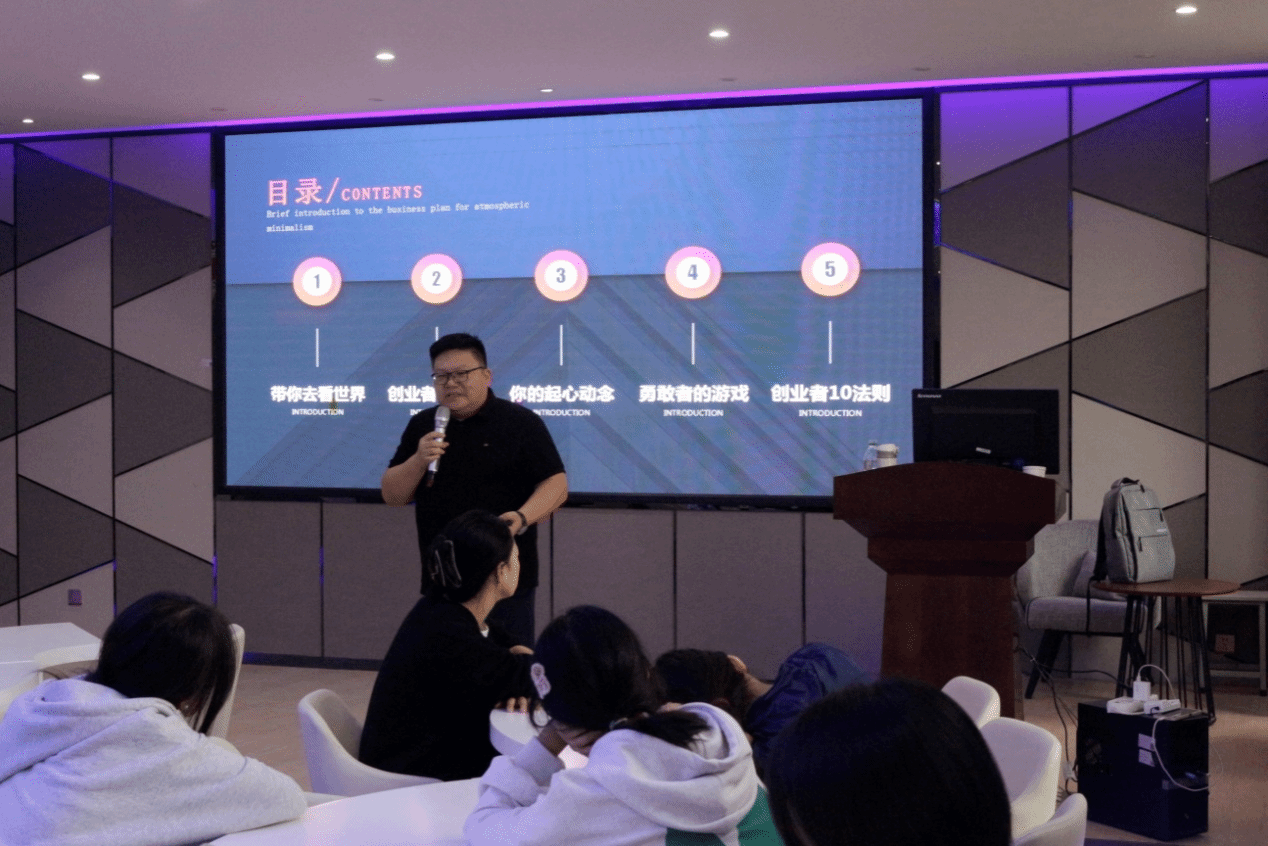 张广辉总经理结合他自身的创业经历,从创业意识、创业想法、创业精神、创业法则等方面做了精彩分享,并和社团学生进行了深度互动,活动现场气氛热烈。此次活动不仅开智了新入社学生的创新创业知识,也极大的丰富了社团活动内容,进一步促进了社团文化建设。