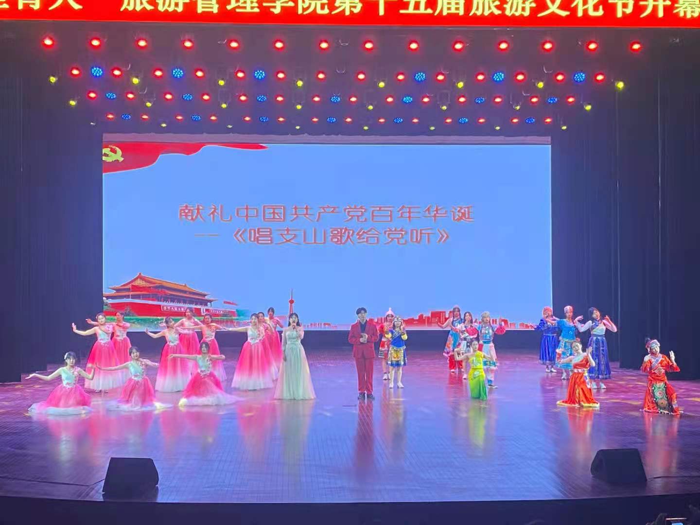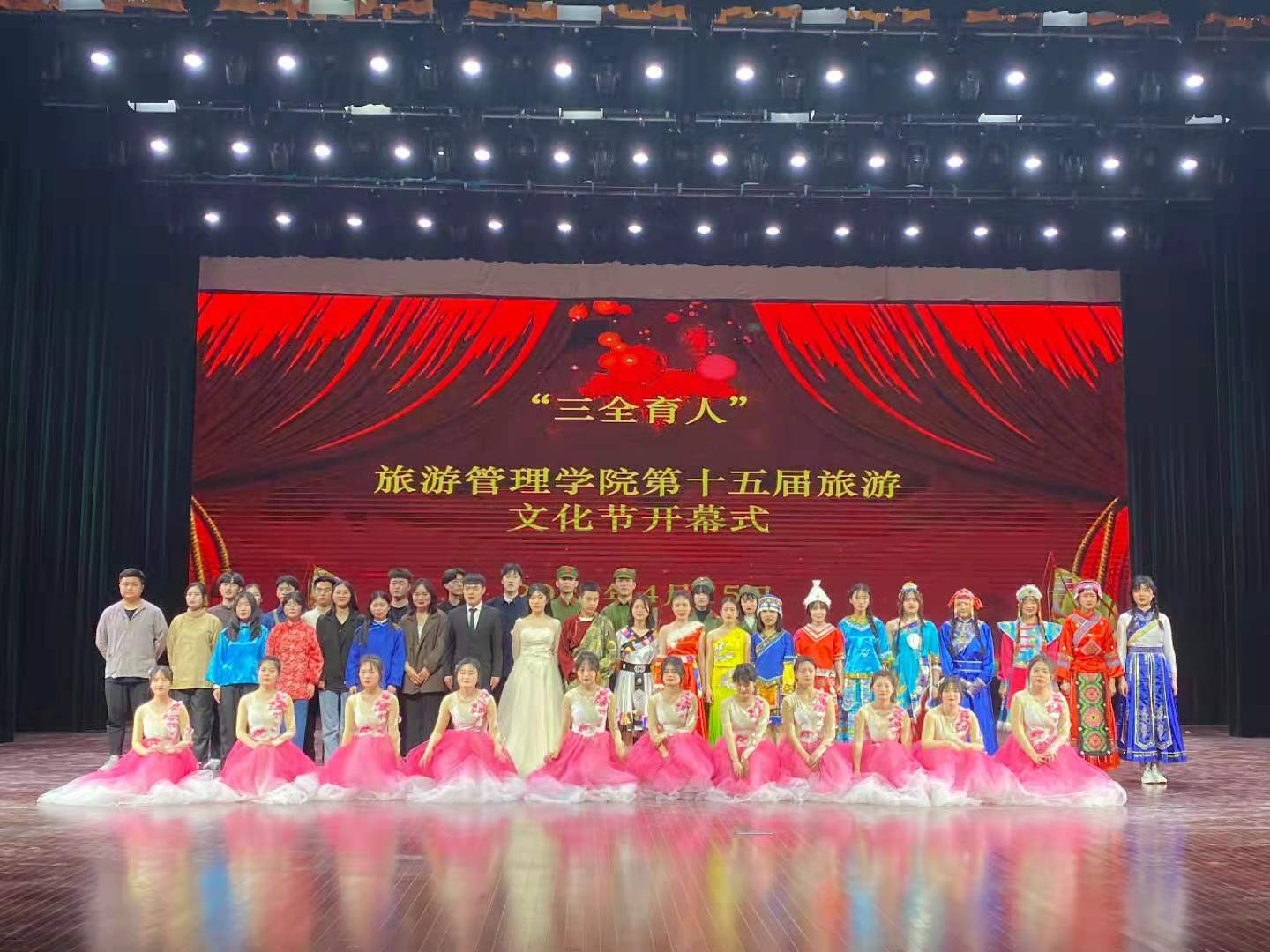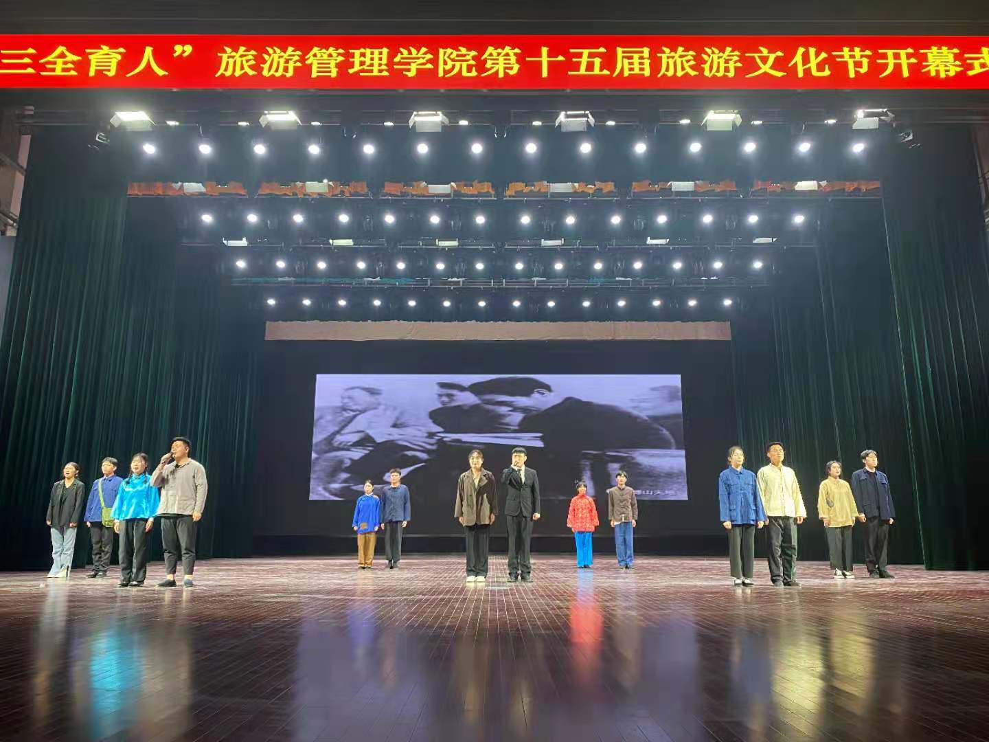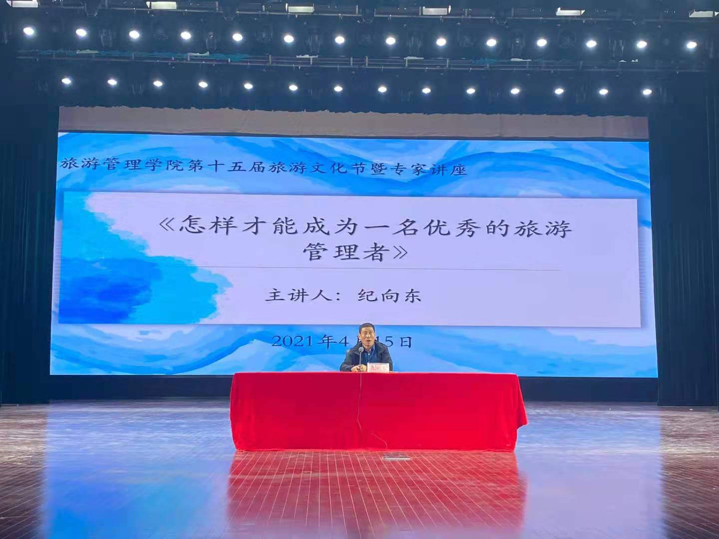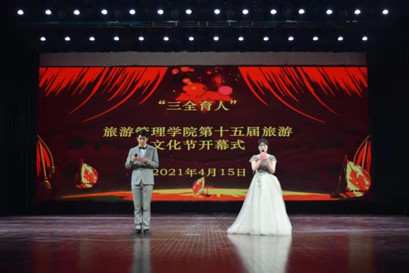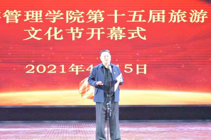 4月15日下午,“学党史、强信念、跟党走”旅游管理学院“三全育人”第十五届旅游文化节开幕式暨专家讲座在象湖校区艺术中心大厅开展。学校党委委员、副校长王振超,学生处处长李立功,保卫处处长宋亚卿,旅游管理学院党总支书记秦合岗、院长李俊、党总支副书记张楗让、副院长张东月、团总支书记金慧慧出席本次开幕式。特邀嘉宾、河南建业文旅运营公司景区运营中心总经理纪向东出席开幕式并进行专题讲座。旅游管理学院各专业课教师、全体辅导员以及全体学生共同参加开幕式。本次开幕式由学生陈静园和李海洋主持。