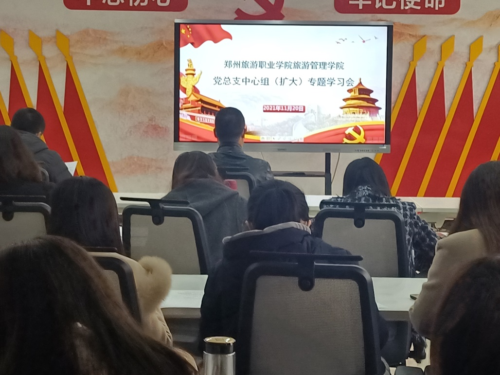 2021年11月20日,旅游管理学院中心组(扩大)召开专题学习会,会议由院党总支书记秦合岗主持,学院全体党员、干部以及学生代表参加了此次专题学习。
