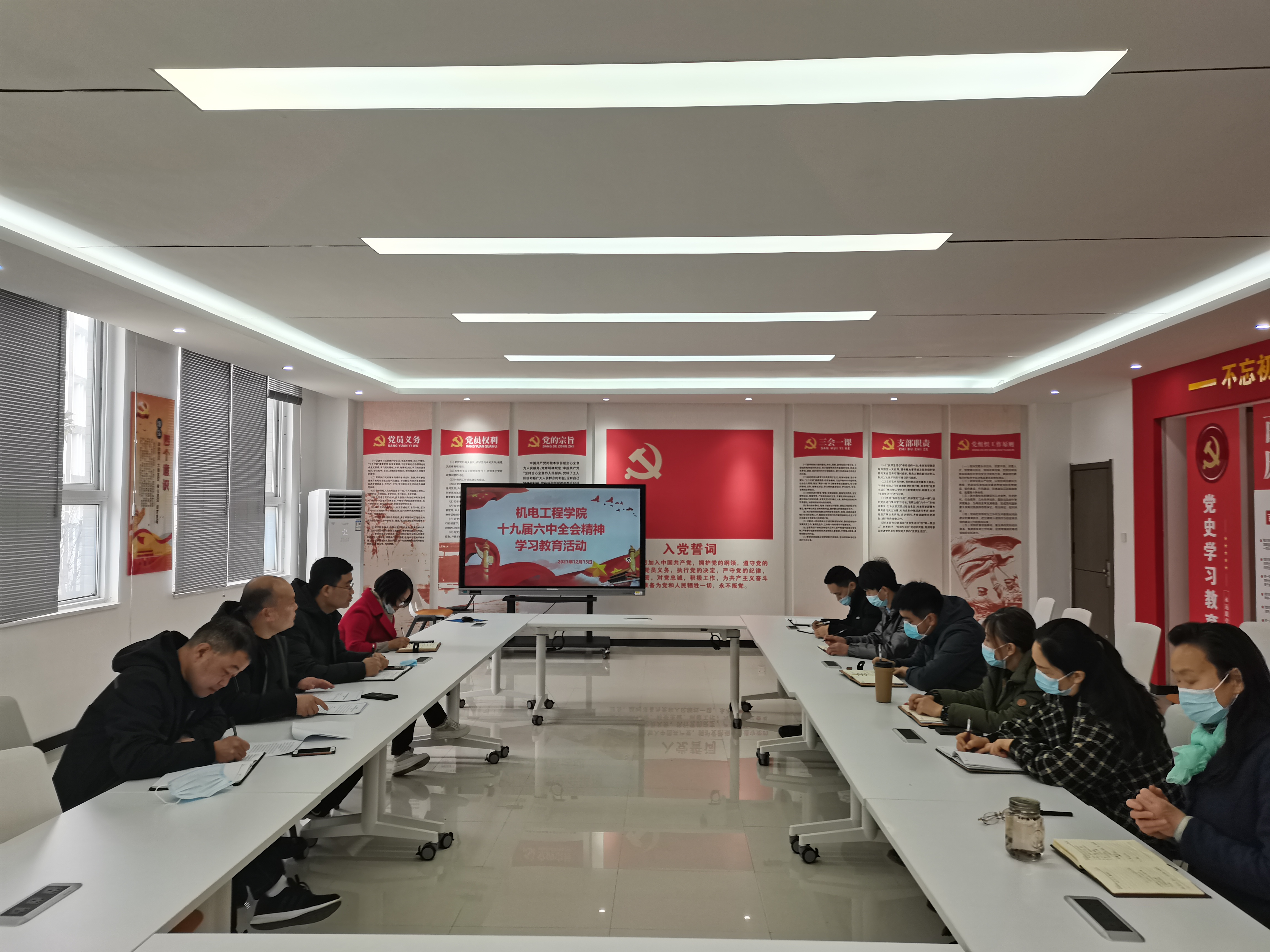 12月15日,机电工程学院教工党支部召开学习会议,专题学习党的十九届六中全会精神。教工支部全体党员参加,会议由教工党支部书记刘晓阳主持。