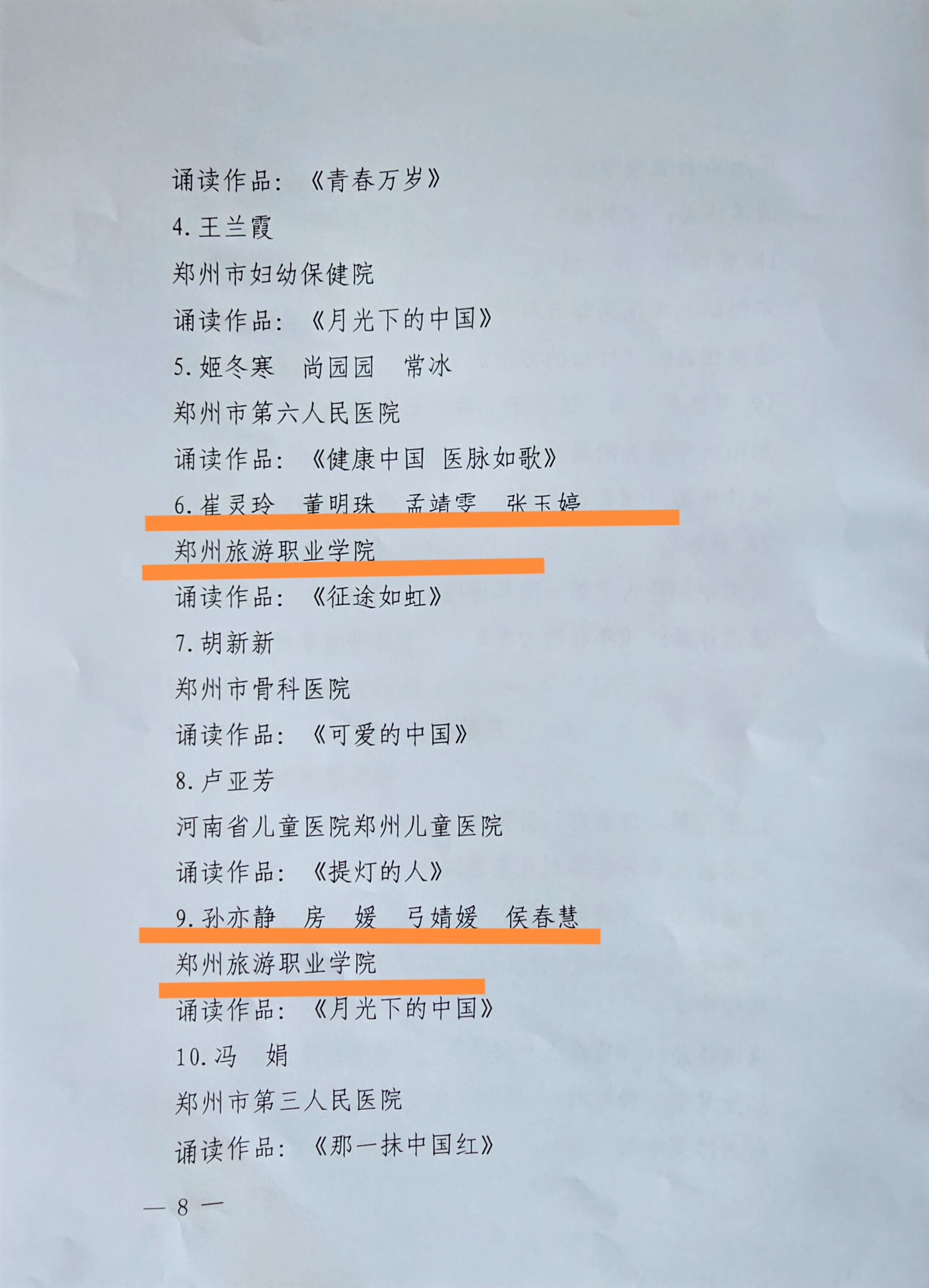 烹饪学院和图书馆共同演绎的诵读作品《我心归处是敦煌——樊锦诗自述》荣获一等奖,两位老师采用娓娓道来的叙述方式,通过平实而深情的语言传递樊锦诗先生对敦煌的赤诚之心;三等奖校团委作品《征途如虹》则运用歌、舞与朗诵相结合的方式,以激昂的语调讴歌了中国共产党百年奋斗的辉煌历程,彰显了新时代青年教师的使命担当;人文学院团队带来的《月光下的中国》,从中文教师的专业视角展现经典篇目,用诗意的语言描绘了祖国的壮美山河,将传统文化与现代爱国情怀相结合,展现了人文学院教师深厚的文化底蕴和家国情怀。