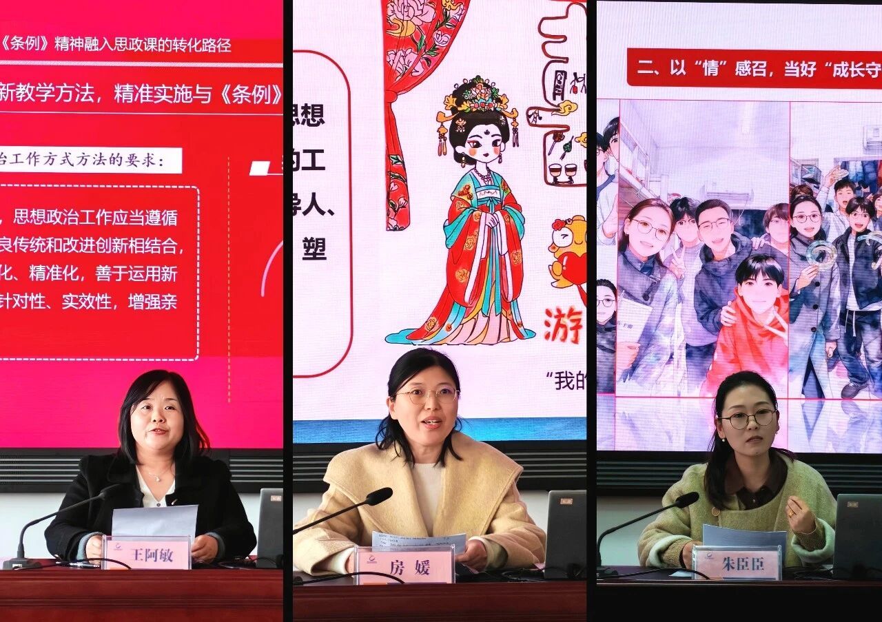 联合教研环节,思政课教师代表王阿敏、公共基础课教师代表房媛、辅导员代表朱臣臣分别结合教学与工作实际,围绕《中国共产党思想政治工作条例》精神融入思政课教学、课程思政建设、学生思想政治教育实践等主题分享经验做法,交流育人思考,为推动思想政治工作与教育教学深度融合提供了实践参考。