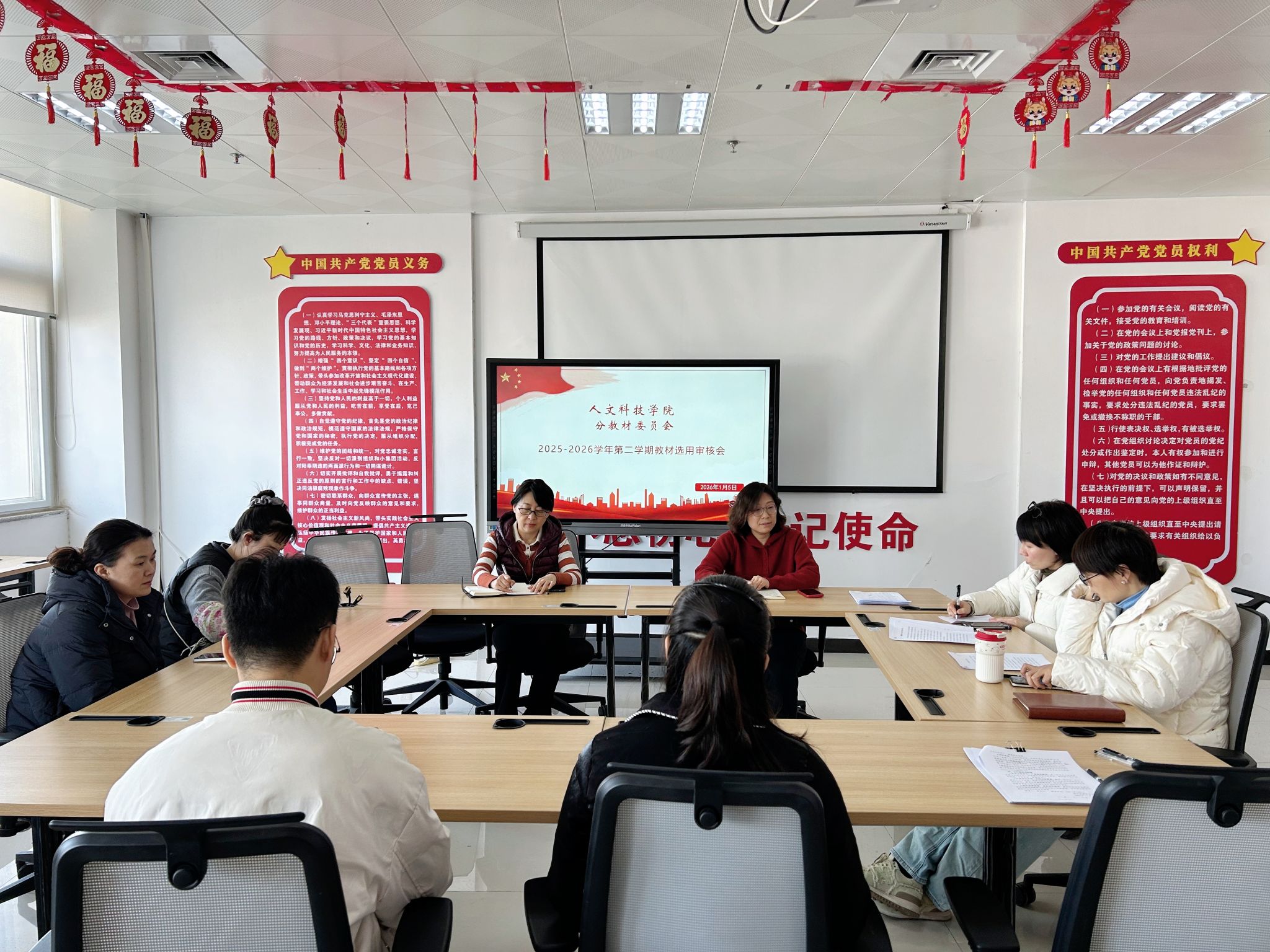 1月5日,人文科技学院分教材建设委员会在行政楼705会议室召开2025-2026学年第二学期教材选用审核会议,对三个教研室为下学期选用的17本教材进行了全面审议,并一致通过教材选用方案。会议由副院长定琦主持。