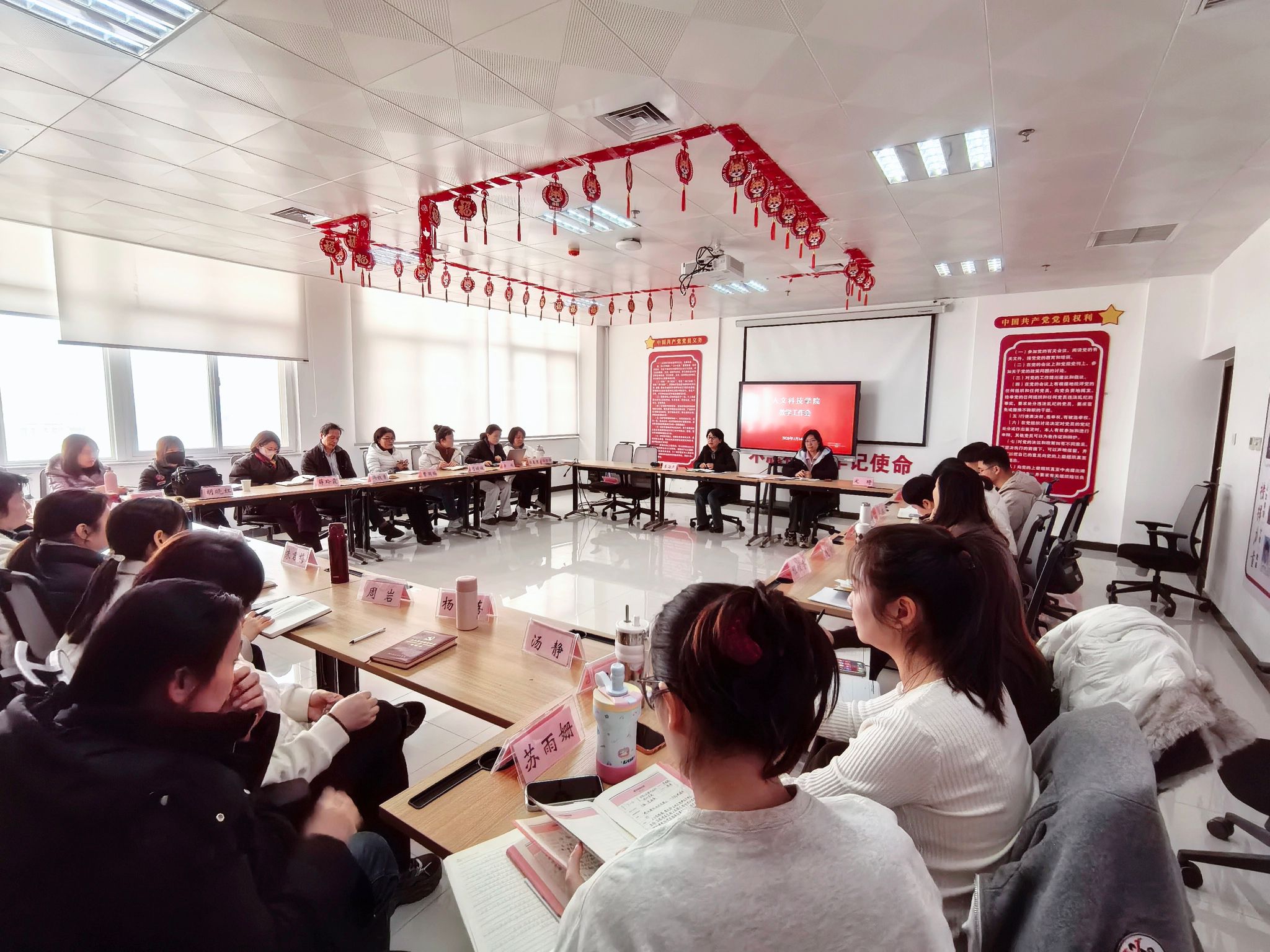 1月14日,人文科技学院在行政楼705会议室召开期末教学工作会,全面总结本学期教学工作成效,部署期末阶段重点任务,科学规划下学期工作方向,人文科技学院全体教师参加会议。会议由副院长定琦主持。