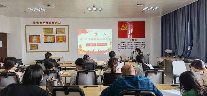 为组织实施好学校“能力作风建设年”活动,2022年4月27日,基础教学部王小红主任为基础部全体成员上了一堂生动的党课——《党员干部要提升防范化解重大风险的能力》。