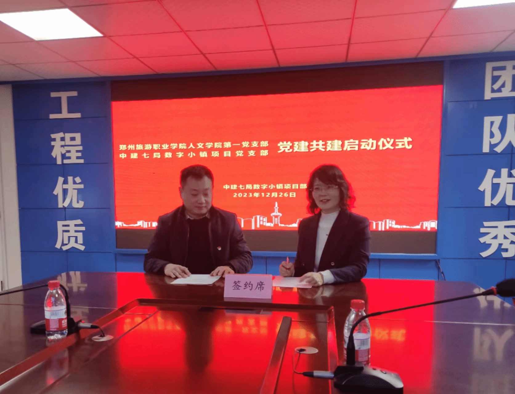 为进一步推动校企深度合作,加强产教融合,人文学院党建引领,聚势赋能,开展 “资源共享、优势互补、互相促进、共同提高”联建共建活动。12月26日下午,人文学院第一党支部与中建七局数字小镇项目党支部举行了共建签约仪式。
