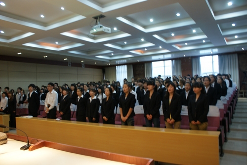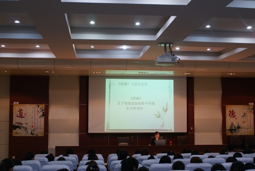 2012年9月13日下午四时,pp电子游戏平台网站道德讲坛——《带着论语走天下》在信息中心一楼报告厅正式开讲,基础部朱君梅老师主讲,全院学生干部认真聆听了此次讲座。