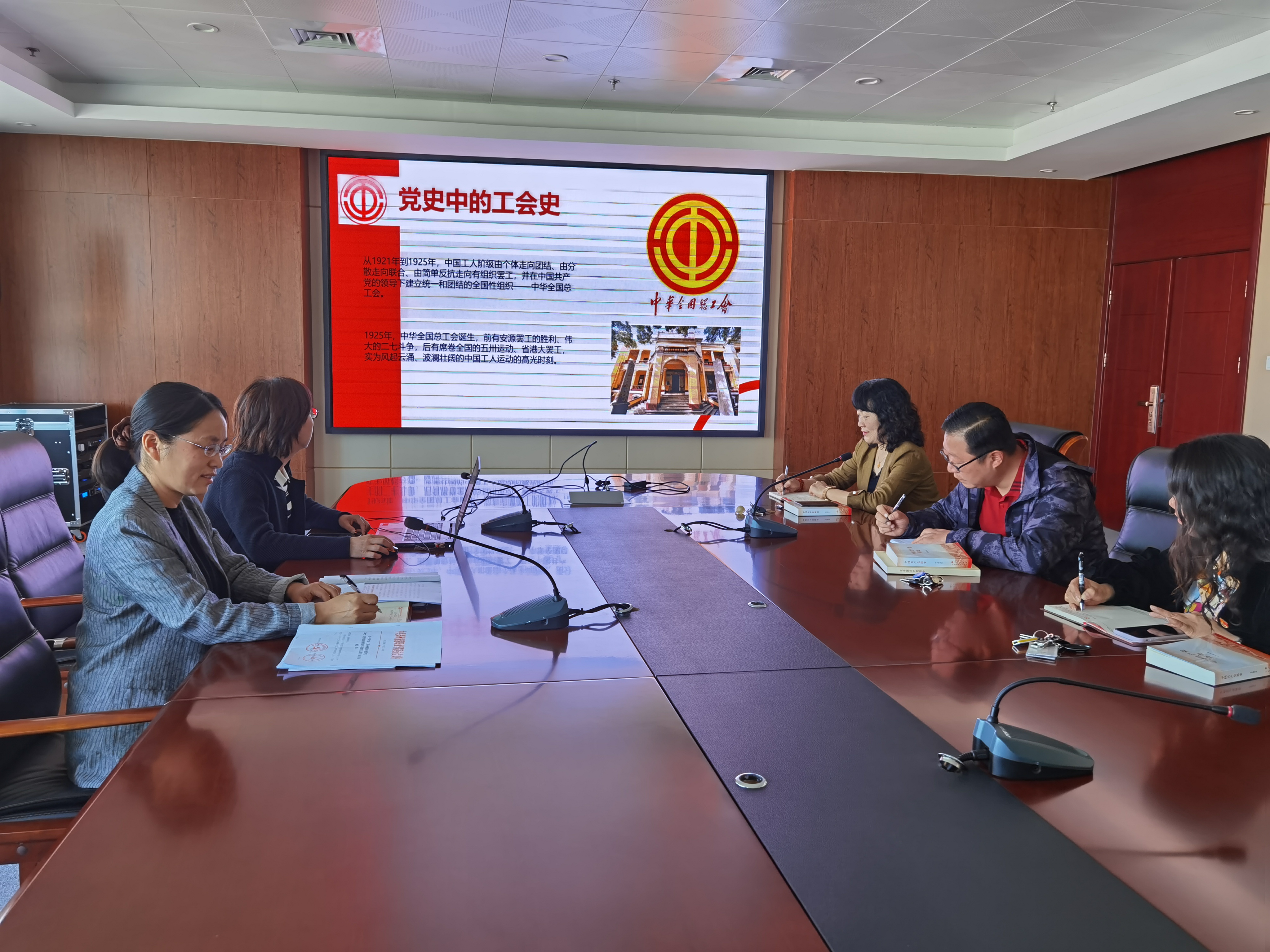 李海燕书记以“党史中的工会史”为主线,介绍了新中国以来工会发展的历程,重点介绍了工会的性质与作用及工会人的使命。接着,大家结合自己岗位实际,围绕“谈初心、悟使命、促发展”主题,把“学党史”和“办实事”结合起来,积极讨论本学期工作清单台账,认真细化具体活动和有关事宜。工会副主席李长秋带领大家重温工人运动发展史并做总结发言,鼓励工会干部学党史、悟思想,进一步激发工作生机活力,助推工会工作创新发展,展现工会干部的新形象新作为。