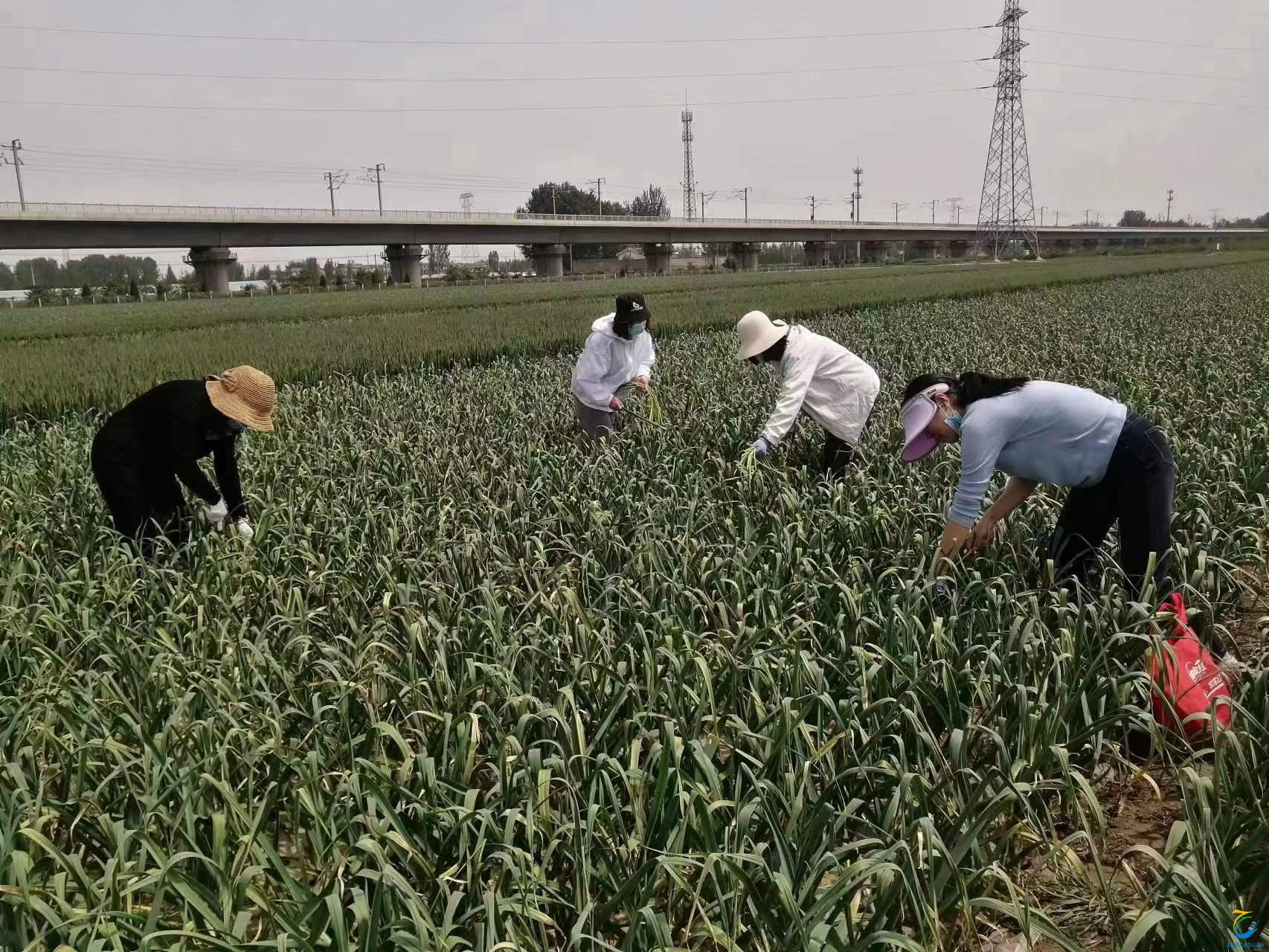 村民首先给大家示范如何抽蒜苔,而后大家开始热火朝天的忙碌起来,虽然天气较热,但大家热情高涨。充分发扬不怕苦、不怕累的精神,经过两个多小时的劳动,部分蒜苔基本采摘完毕,村民非常开心,一再表示感谢。