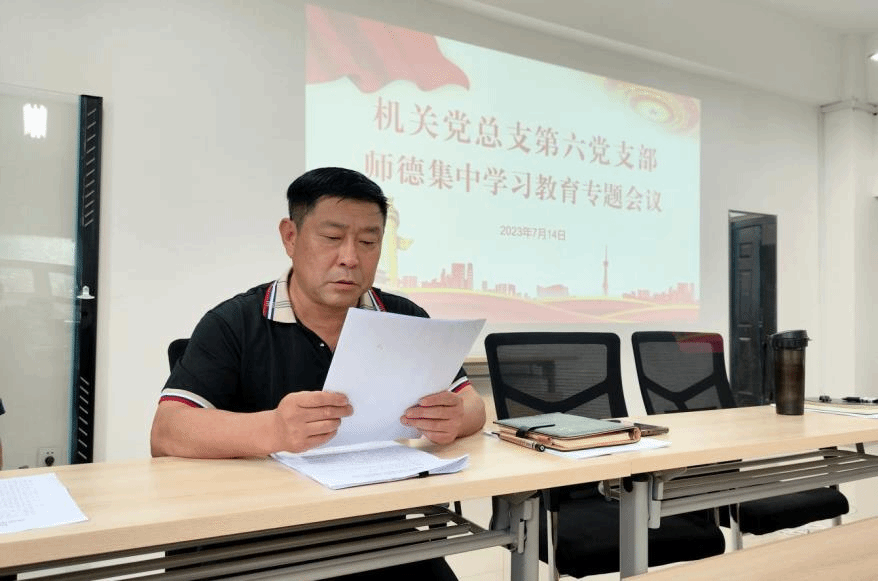 根据《河南省教育厅关于在全省教育系统做好师德集中学习教育的通知》(教师[2023]211号)、pp电子游戏平台网站关于在全校做好师德集中学习教育的通知文件要求,机关党总支第六党支部于2023年7月14日上午召开师德集中学习教育专题会议。会议由党支部书记王军红主持,支部全体党员、部门在编人员及人事代理人员参会。