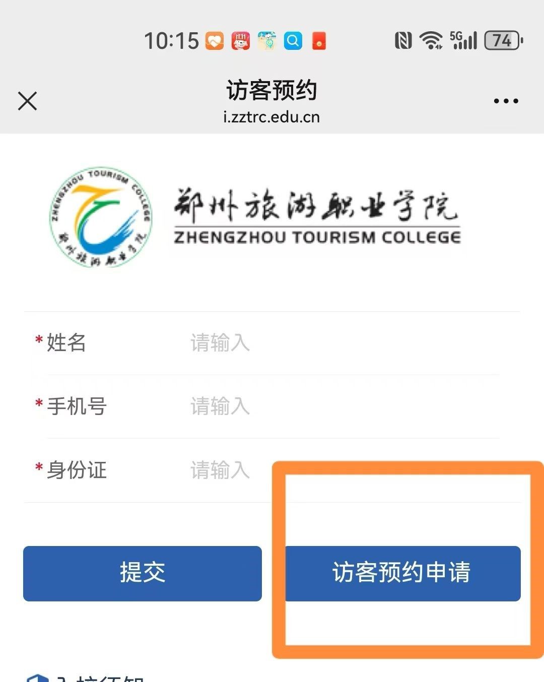 扫描二维码以后可点击“访客预约申请”,按相关信息进行填写。