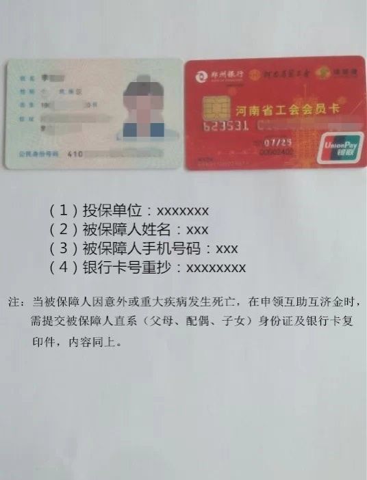 附:保障计划书、会员身份证、工会会员卡(郑州银行卡)、医院诊断证明等复印件 |
