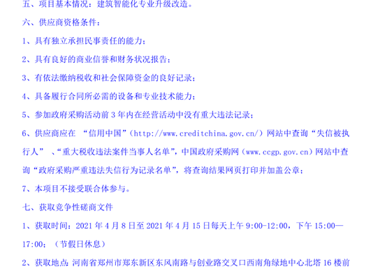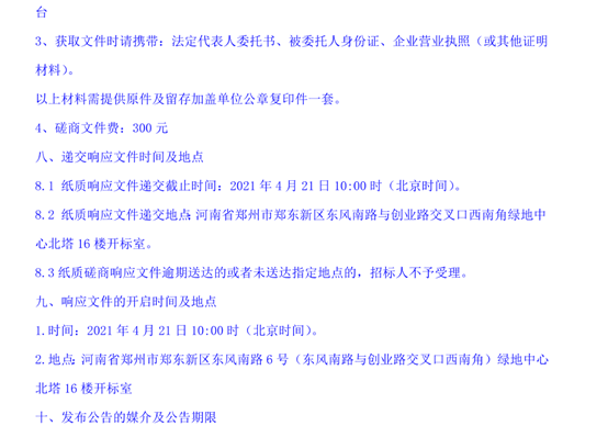 发布时间:2021年04月08日 13:08 责任编辑:姬晖 来源:河南省电子招标投标公共服务平台 浏览次数: