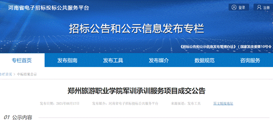 发布时间:2021年08月17日 09:53 责任编辑:姬晖 来源:河南省电子招标投标公共服务平台 浏览次数:
