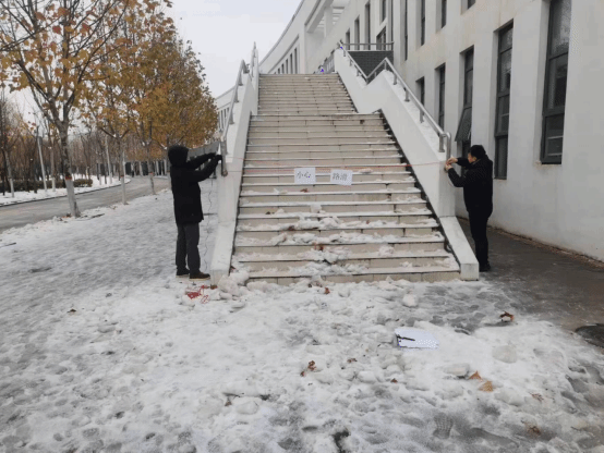 针对雨雪天气造成的室外楼梯湿滑情况,朱世杰带领2位老师利用绳子对楼梯进行拦截限行,并粘贴了提醒标识。检查组还对超市进行了食品安全、消防安全等方面的检查,对存在安全问题的商户,要求其立即整改。