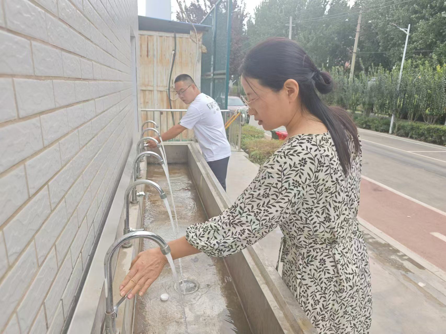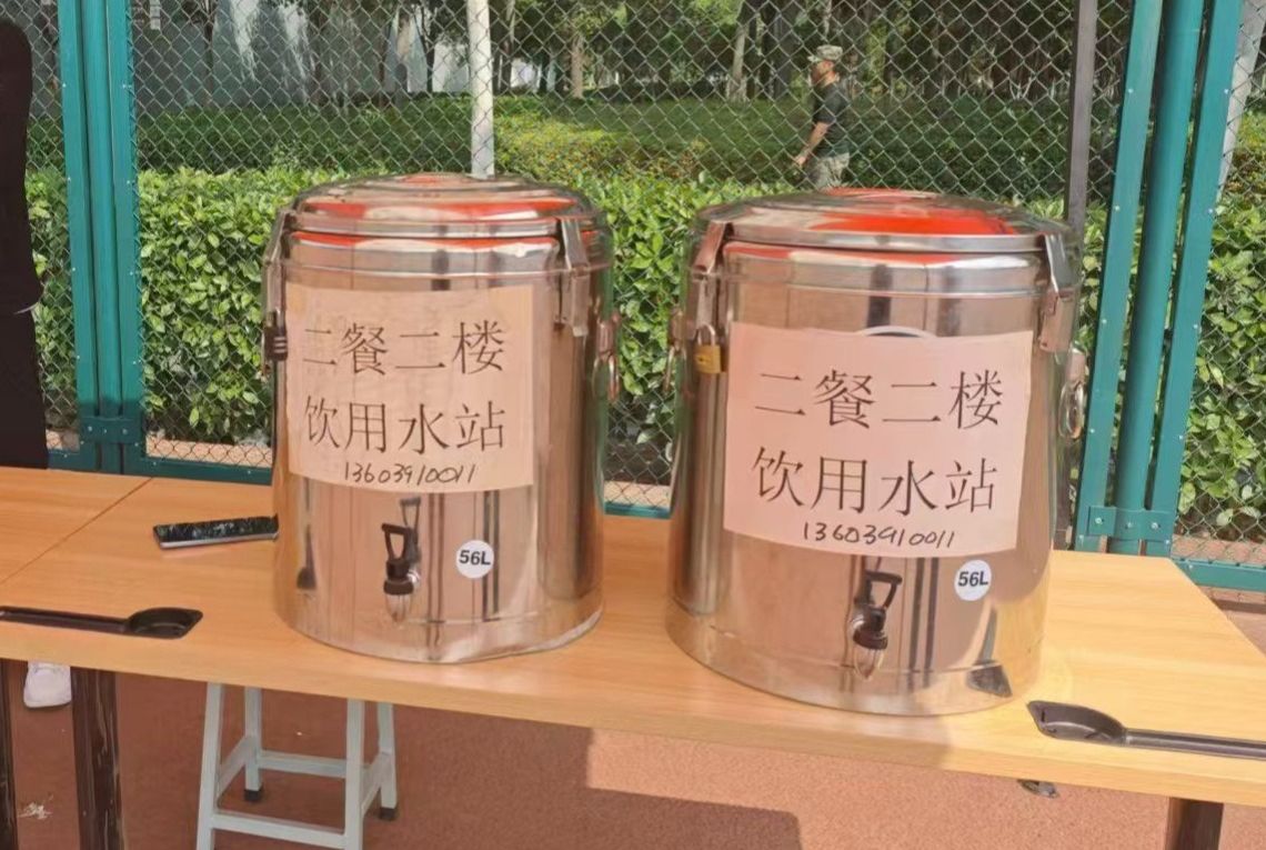 各餐厅每天不定量提供的免费绿豆汤、菊花水,持续稳定提供饮用水站供水,消去了新生军训后的热渴。