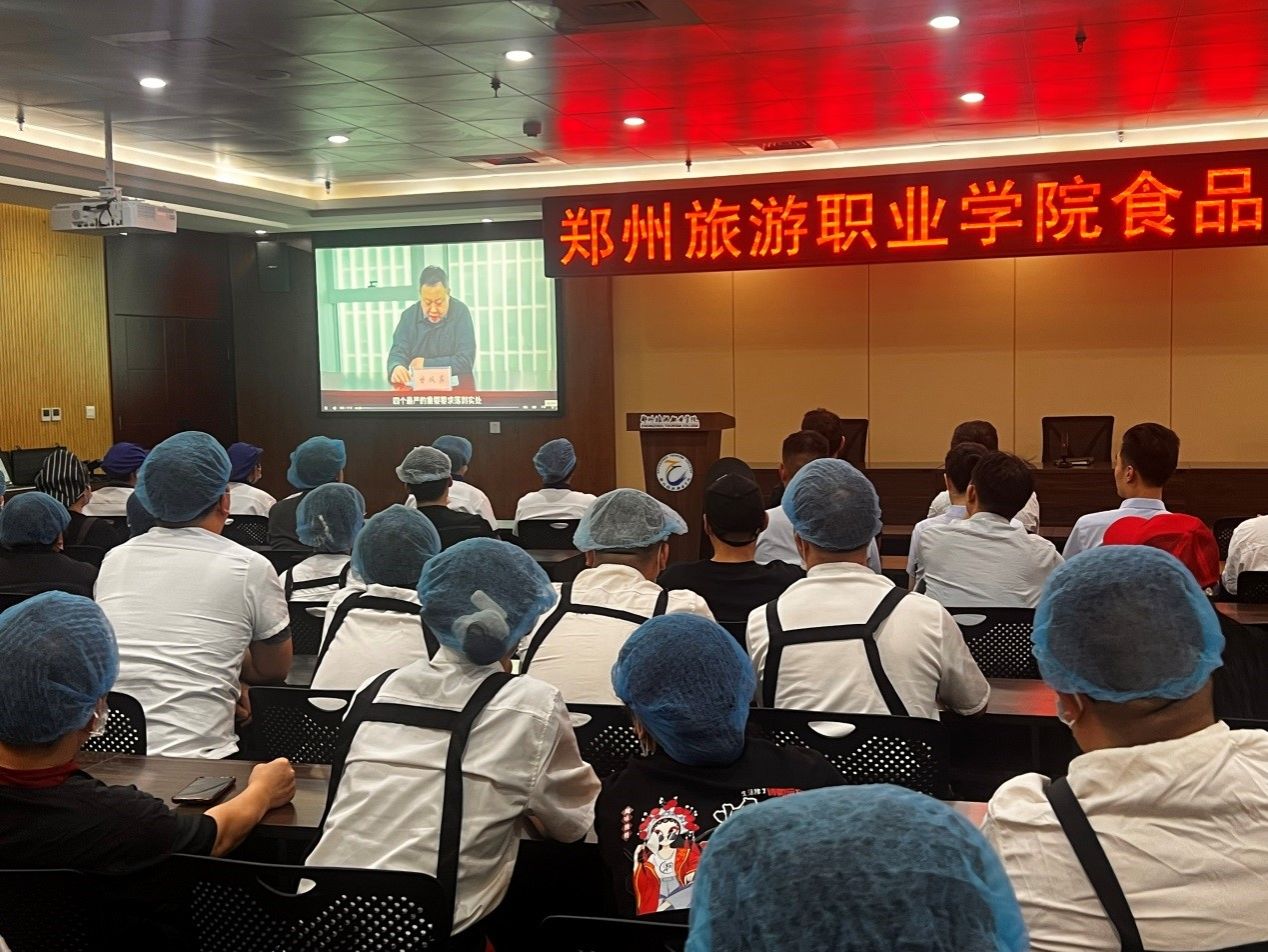 观看结束后,餐饮管理科负责人刘海涛长结合学校实际情况,对视频中的内容进行了详细解读,并提出了具体的工作要求。他指出,学校食堂要严格按照食品安全标准进行操作,加强食材采购、储存、加工、留样等环节的管理,确保食材新鲜、安全;食堂工作人员要定期进行健康体检,持证上岗,保持良好的个人卫生习惯;餐饮科要加强对食堂的日常监督检查,及时发现和整改存在的问题,确保食品安全无死角。