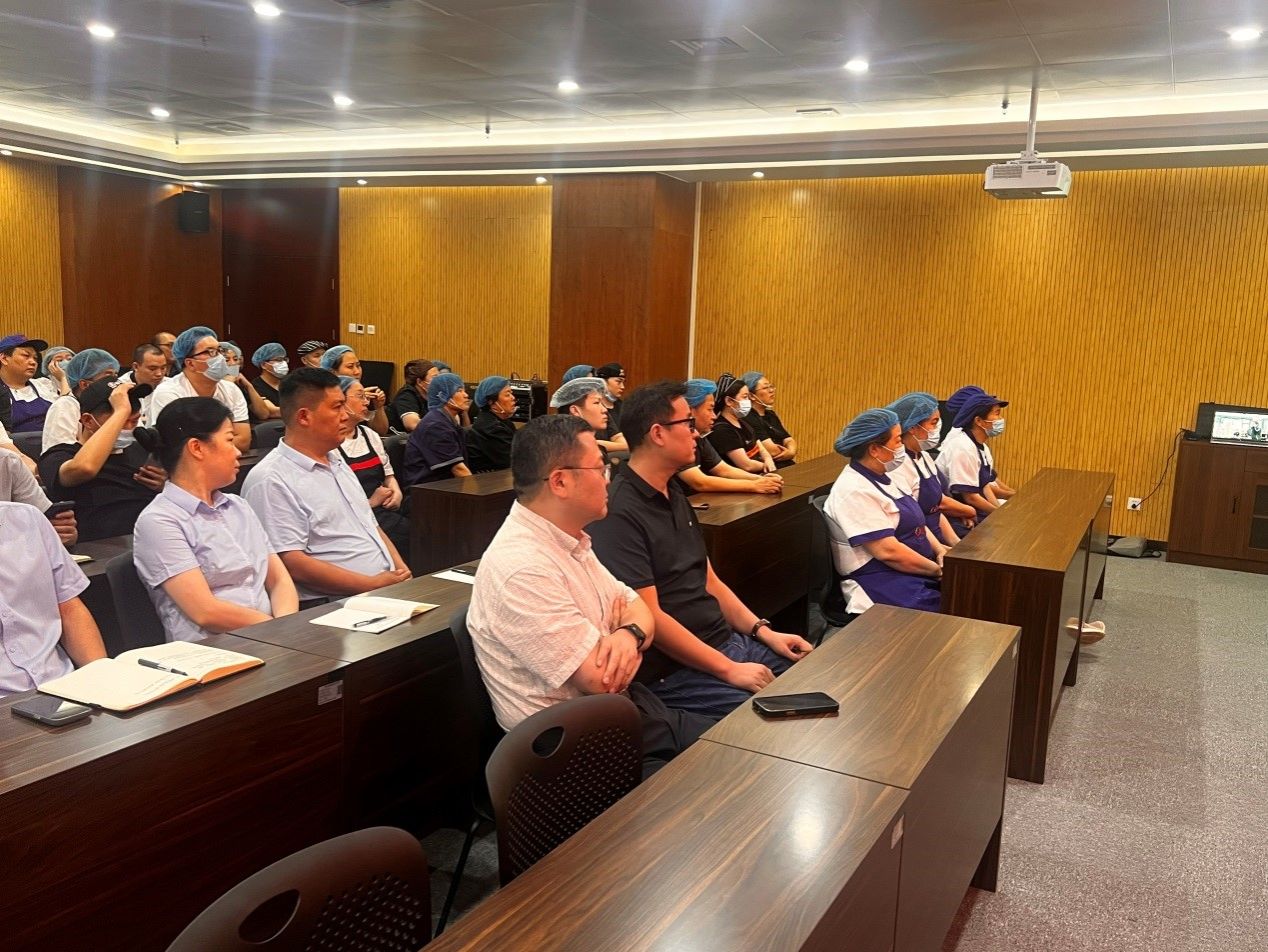为切实加强校园食品安全管理,提升学校应对食品安全突发事件的应急处置能力,保障师生的身体健康和生命安全,按照市市场监督管理局、教育局及社会事业局等上级主管部门工作部署要求,pp电子于5月26日在行政楼310会议室召开食品安全知识集中学习暨培训会,校党委委员、副校长张建军,后勤保障处相关人员,各食堂经理(店长)、厨师长,库管、食品安全员等120余人参加培训。会议由后勤保障处餐饮管理科负责人刘海涛主持。