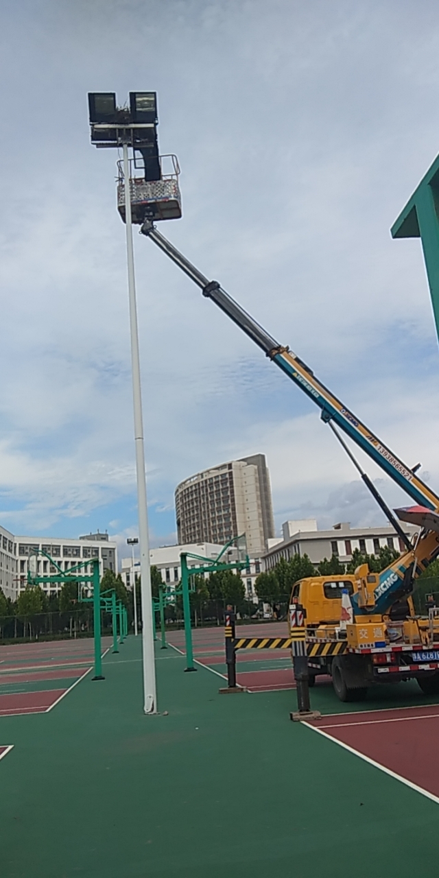 后勤保障处维修体育场照明灯