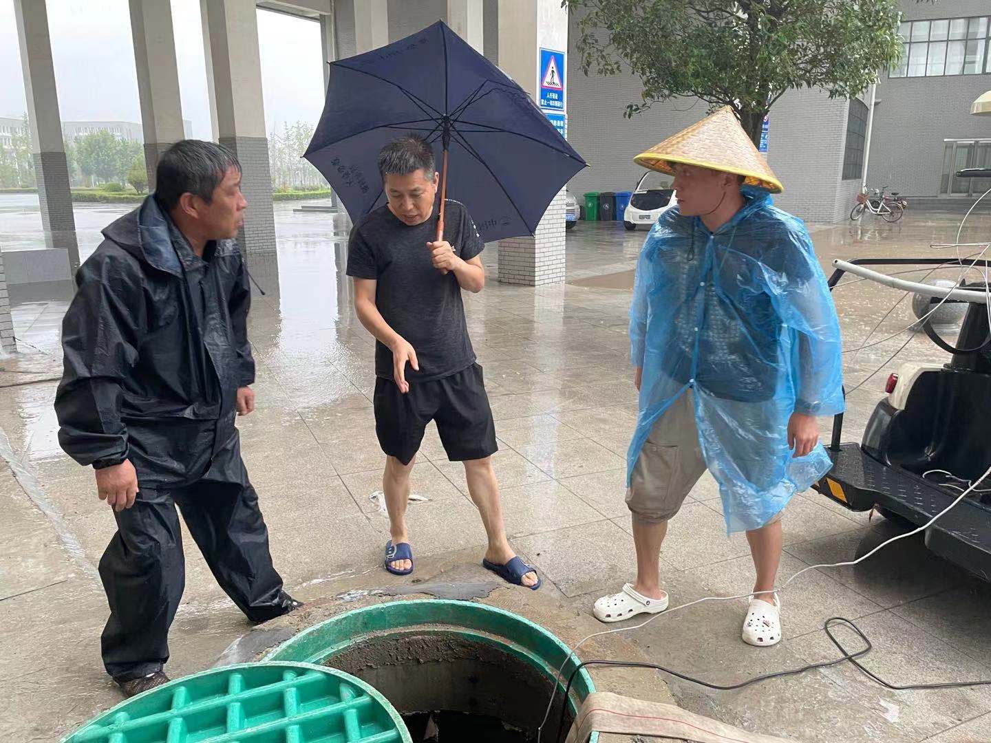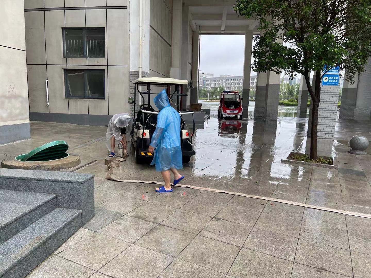 由于近两天强降雨天气,pp电子积水较深,湖水高涨。今天石国河主席带领后勤保障处人员全校排查,针对车库漏水问题安排及时排水并要求雨后整改。并对所有配电房进行全面排查谨防雨水流入。