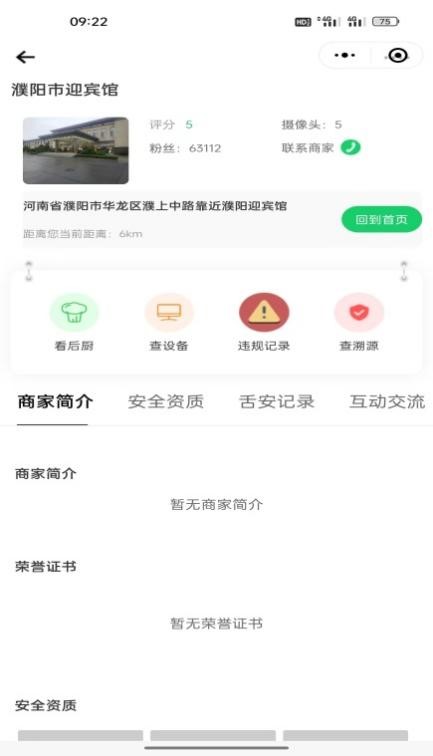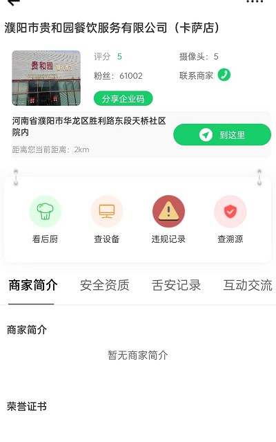 3、进入单位详情,点击右上角分享二维码,使用微信扫码功能,即可进入舌尖安全网微信小程序,进行观看。
