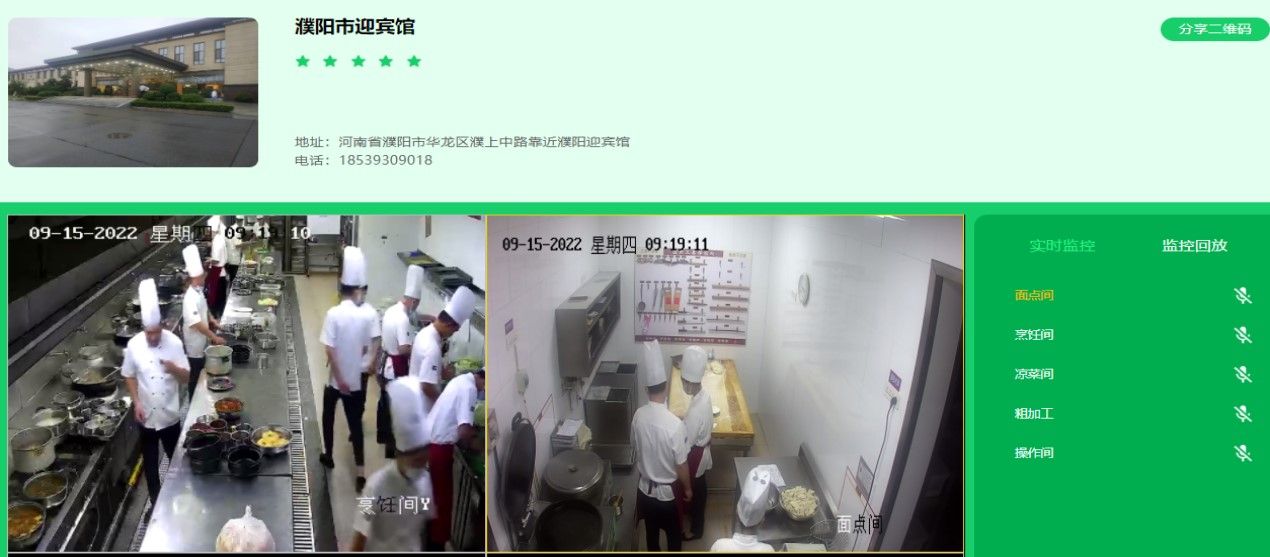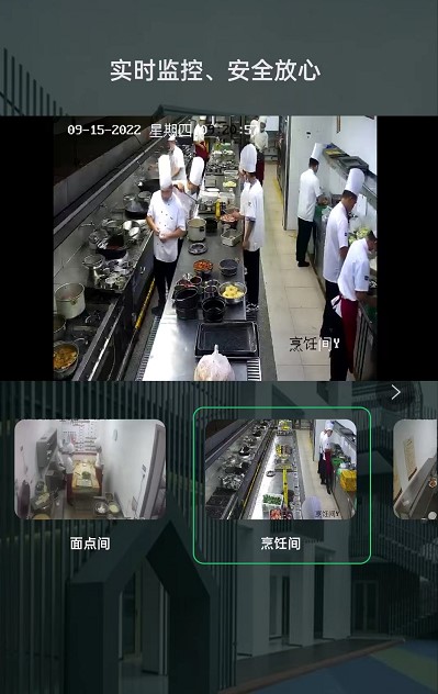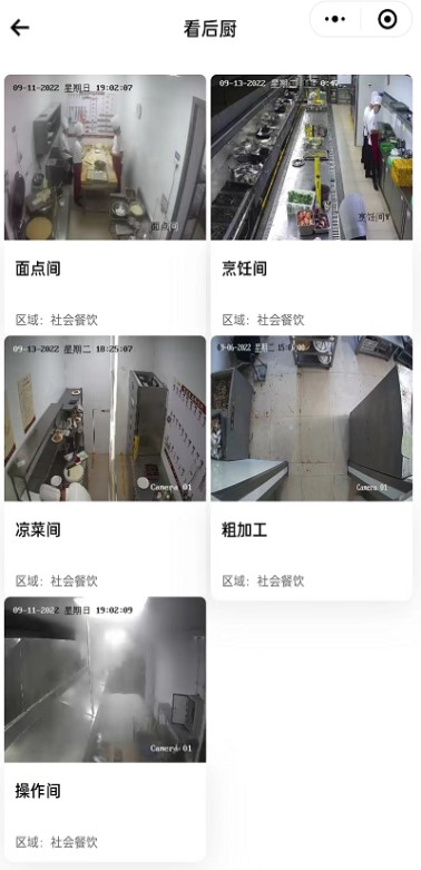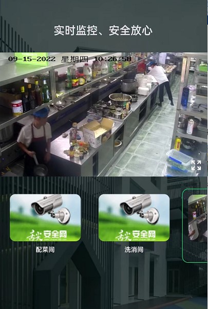 4、 点击看后厨,观看此单位厨房实时画面