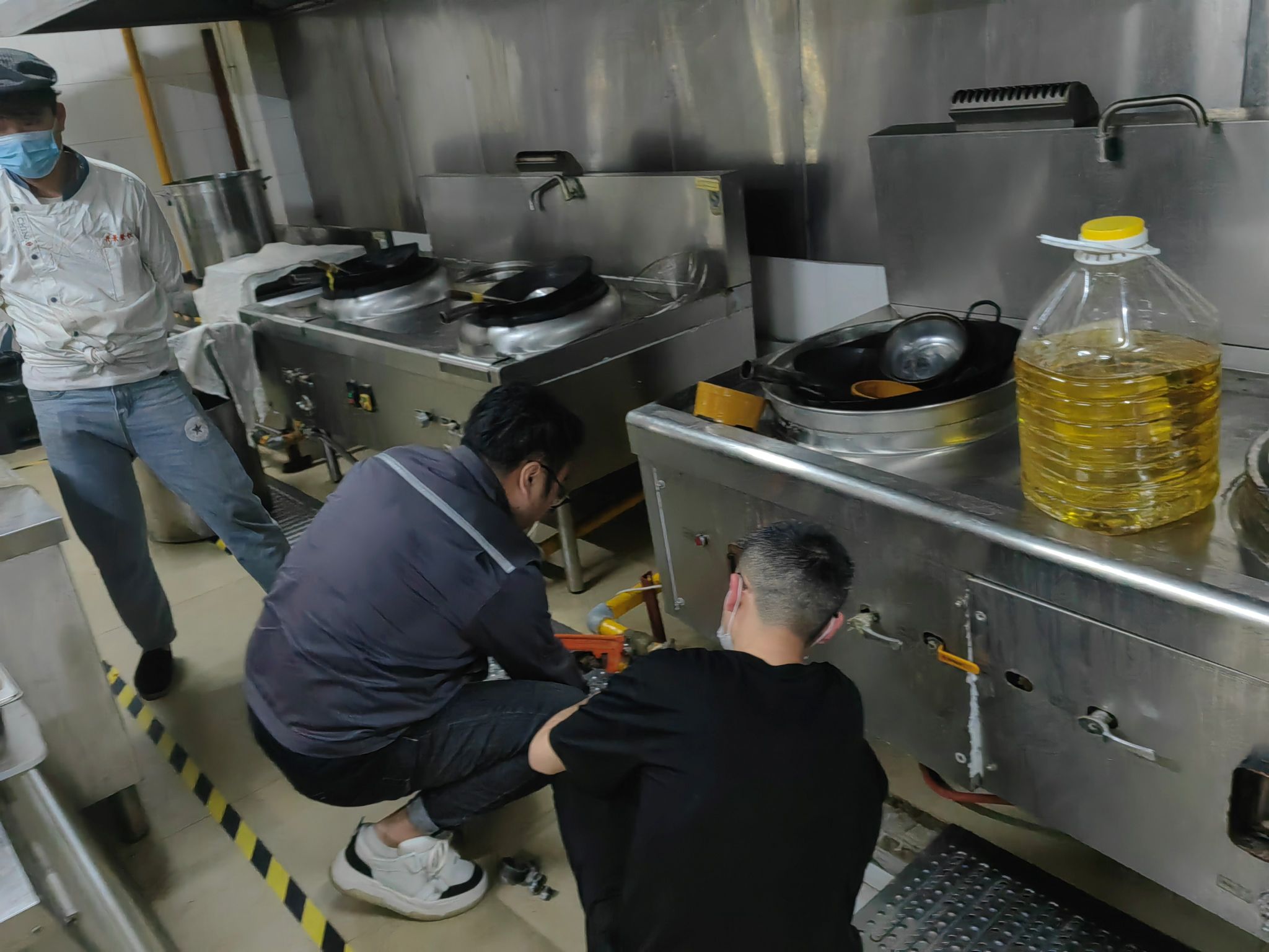 2023年6月28日,在学院安全生产月各项工作开展的基础上,后勤保障处又联合华润燃气公司和郑州通之安机电设备有限公司、湖南赛西科技有限公司对学校新校区6个食堂和老校区食堂进行了燃气安全隐患排查。通过认真开展燃气安全专项检查,对燃气管道、燃气报警器(气体泄漏监测探头)、切断阀、室外调压柜等燃气、报警设备进行拉网式排查,重点对炉具和管道连接处是否有泄漏情况、管道腐蚀情况进行了逐一测量检测。