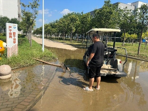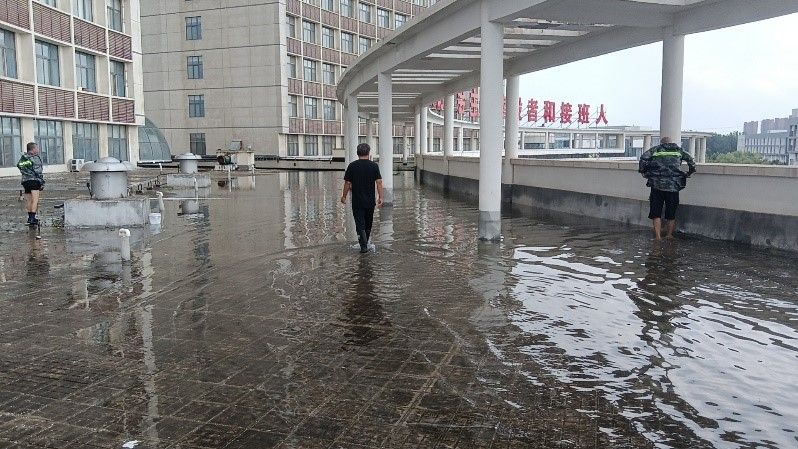 后勤在校人员与安全保卫中心配合对学校低洼易积水区域和重点关键区域开展安全巡查工作,巡防工作在狂风暴雨中进行,大家坚守岗位,任劳任怨,不敢有一丝懈怠,牢固树立底线思维,扎实推进防汛各项工作有序开展,确保校园安全稳定。