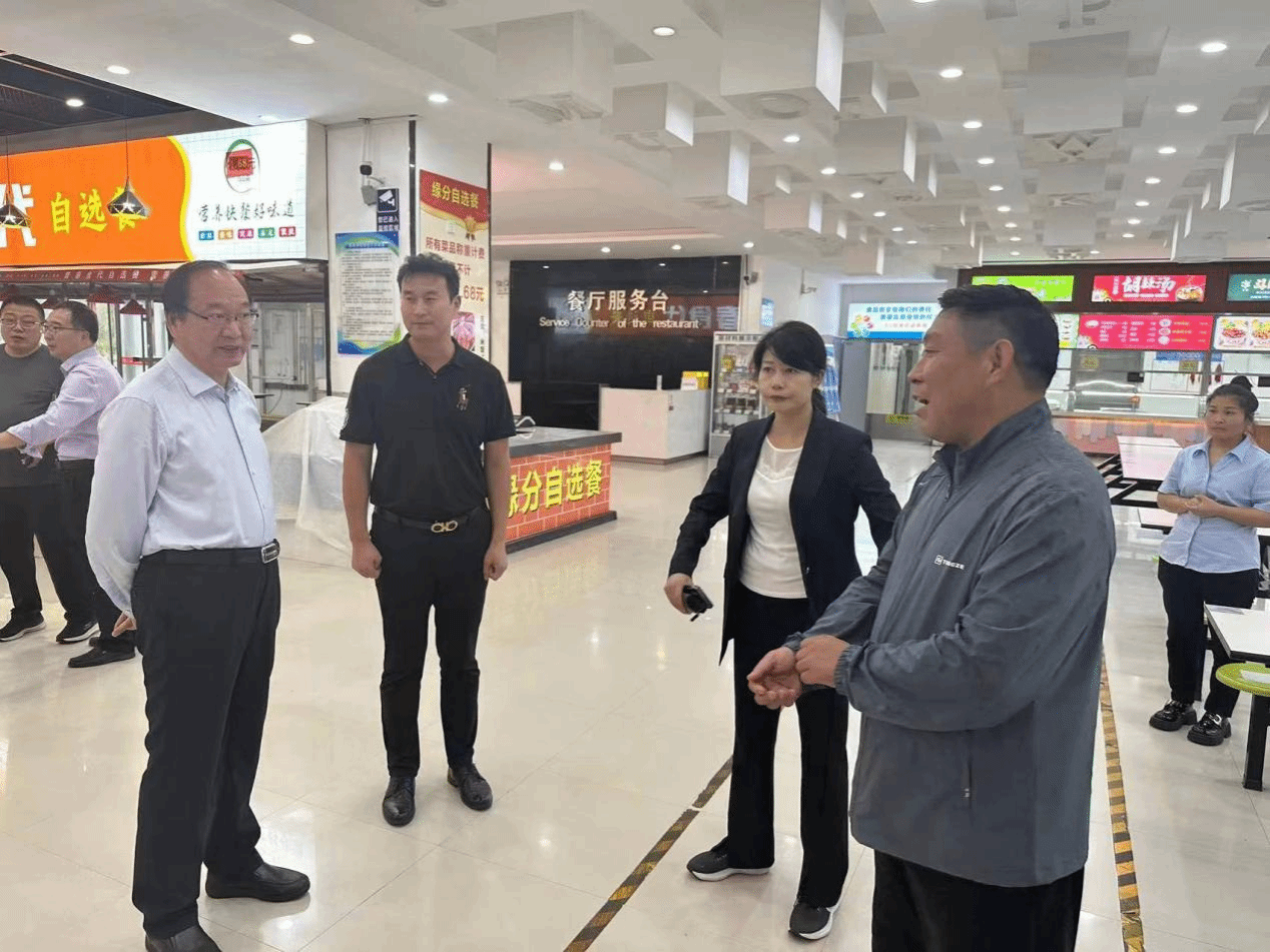 中秋和国庆节将至,为确保节假日期间校内的安全,防止重特大事故的发生,2023年9月28日下午,校党委书记王艳红、校长文广轩在后勤保障处处长王军红、安全保卫中心处长宋亚卿等相关领导的陪同下,对pp电子学生一餐厅一楼进行节前安全大检查。