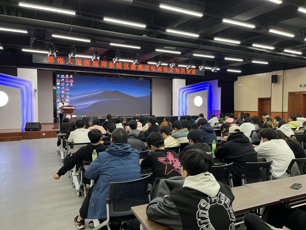 校医室邀请郑州人民医院郑东院区相关专家进行防艾知识讲座,通过图片、案例向同学们介绍了艾滋病的病因、传播途径、危害及如何防治等方面的知识,让大家认识到养成健康生活习惯的重要性,努力避免血液感染,不到不正规的医疗场所打针等。同时也引导同学们不要因此过于紧张,了解握手、进餐、拥抱等一般不会传染艾滋病,不惧怕、不歧视艾滋病病人和病毒感染者,学会正确对待他们。