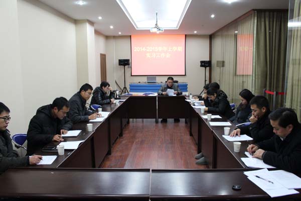 实习实训管理中心王俊杰科长最后布置了在岗稳定率的调查、自主实习学生的跟踪管理及启动2015年实习基地建设等的具体工作。