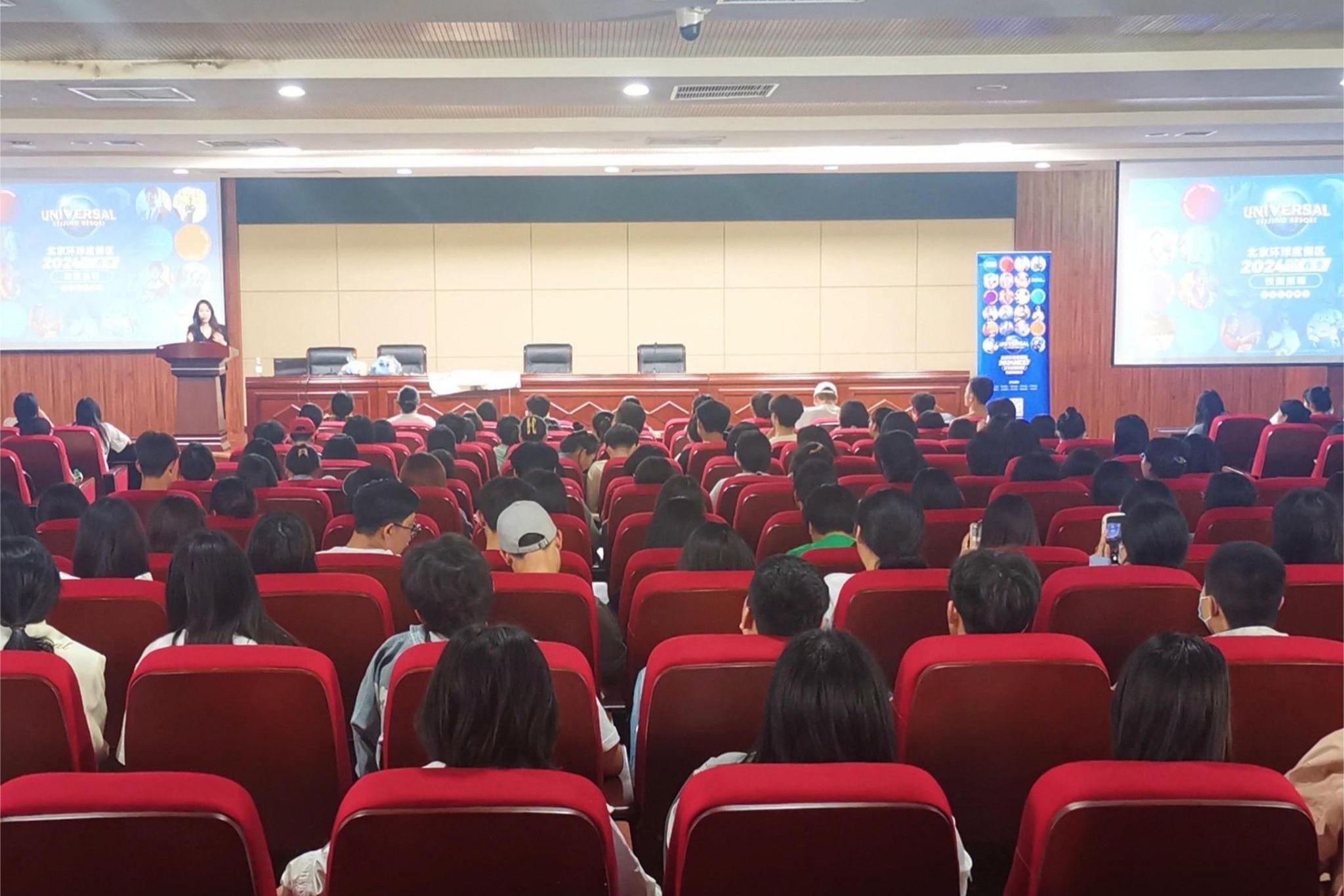 会上,袁霄端全面介绍了度假区发展历程、企业文化、设施设备、运营理念等情况,使同学们对环球度假区的工作环境、生活条件产生了直观的认识,并发布北京环球度假区2023年实习岗位校园招聘方案。活动吸引了百余名pp电子同学参加,受到全体师生的一致好评。宣讲现场气氛活跃、秩序井然,同学们认真聆听且积极主动的参与互动。