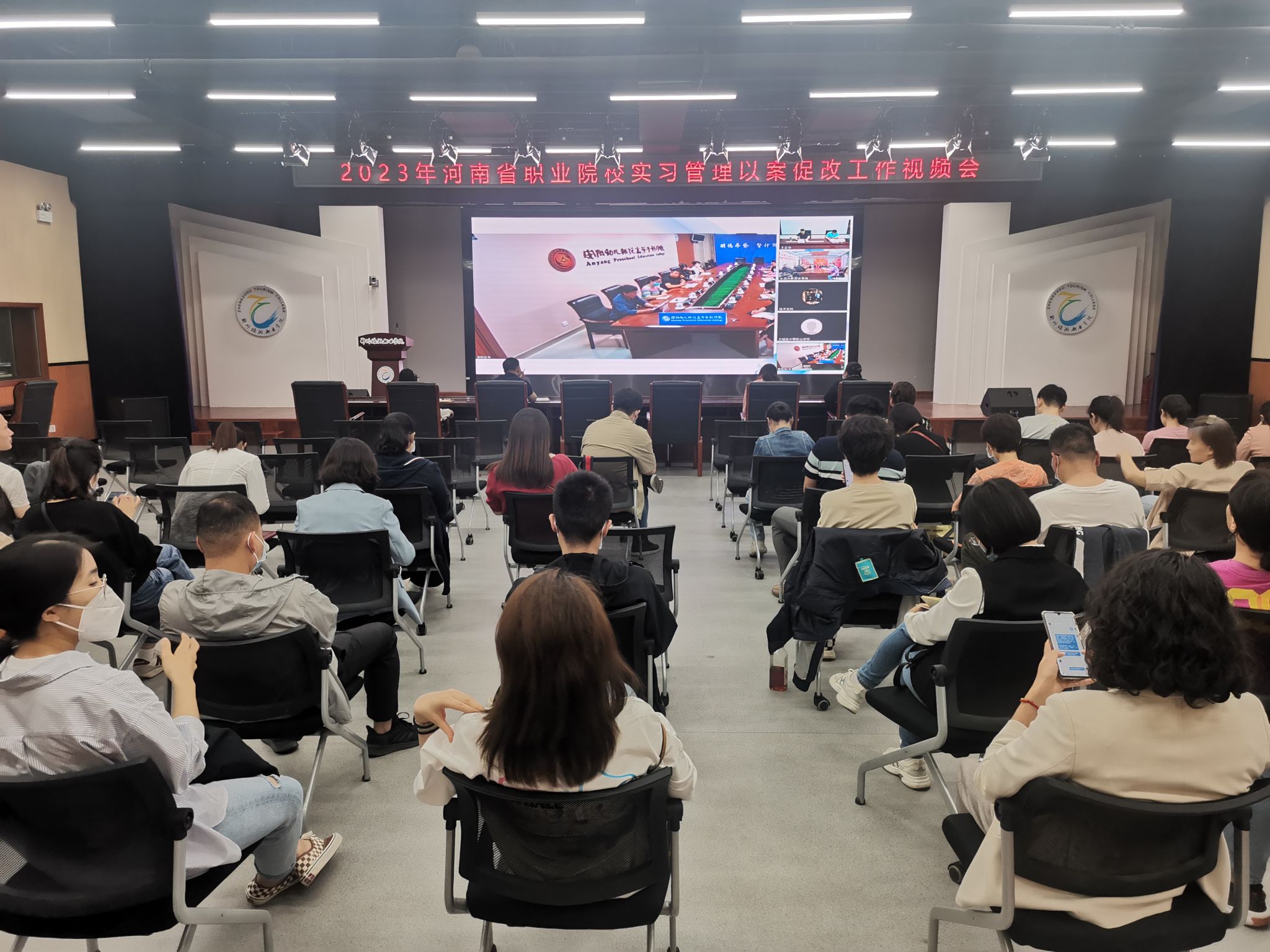 5月26日上午,pp电子合作发展中心主任朱宇、各二级学院院长、实习科科长王俊杰、实习干事、实习指导教师在综合楼4楼演播中心集中收看河南省职业院校实习管理以案促改工作视频会。会议分析了各职业学校实习管理工作开展情况,对职业院校实习管理以案促改工作情况进行总结,并安排2023-2024年河南省职业院校学生实习有关工作。