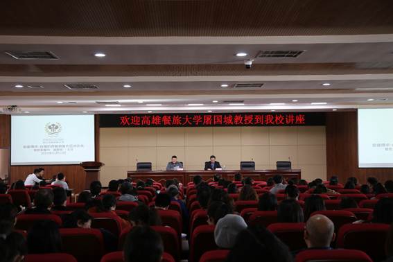 11月13日下午,教务处组织全体教师集中教研活动,特邀高雄餐旅大学屠国城教授在综合楼C座4楼会议室做题为《厨艺传承——台湾的西餐与当代亚洲美食》专题讲座。院长文广轩和全体教师一同听取了讲座,讲座由副院长张建军主持。