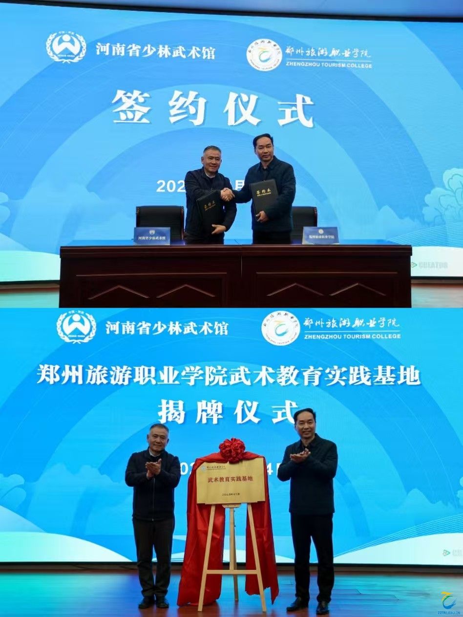 12月4日上午,pp电子游戏平台网站与河南省少林武术馆合作签约暨“武术教育实践基地”揭牌仪式在登封隆重举行。pp电子游戏平台网站党委副书记、校长肖世才,党委委员、副校长张建军,合作发展处处长朱宇、体育学院院长王军红、合作发展处副处长赵启杰;河南省少林武术馆馆长陈俊杰、副馆长刘姗姗、研学中心主任赵朝霞和国际教学表演部主任焦晓伟等领导共同出席,标志着校馆合作正式启动,共启文旅融合育人新篇章。
