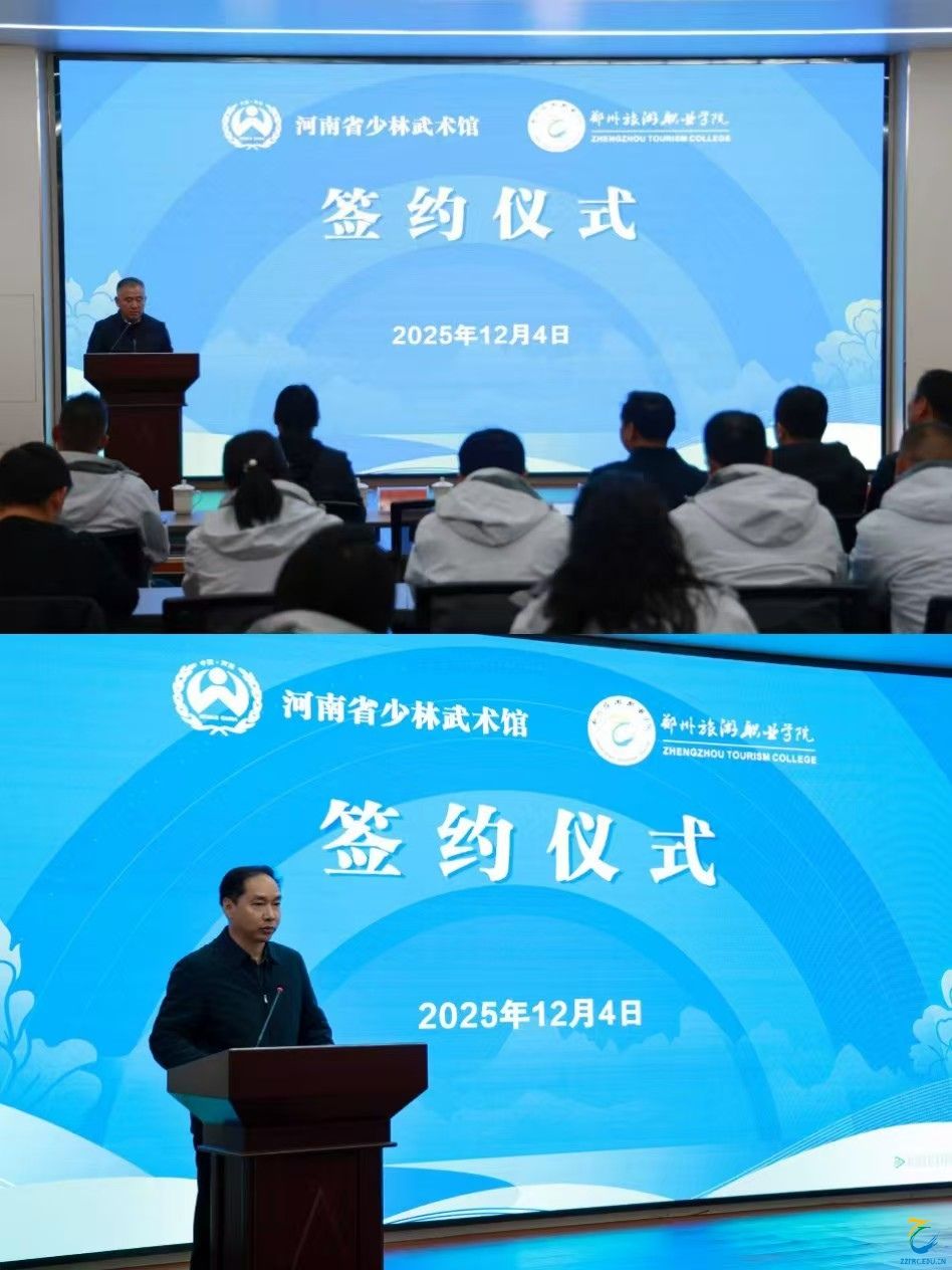 陈俊杰详细介绍了河南省少林武术馆的发展历程与现状,他在致辞中强调,此次合作是对少林武术文化价值与教育功能的充分肯定。双方将围绕“资源互通、人才共育、项目共研、成果共享”,携手打造实景化教学平台、共建特色课程、加强师资交流,共同探索“武术+旅游”融合发展新模式。
