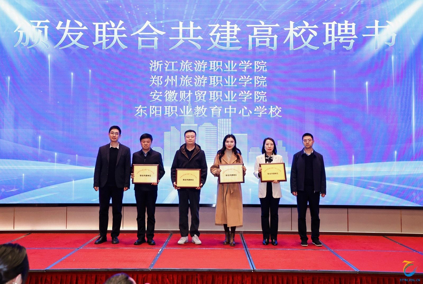 12月18日,东阳市影视文旅产业人才学院挂牌仪式在浙江省东阳市横店镇成功举行。pp电子作为该产业学院的共建高校,受邀参加本次活动,旅游管理学院副院长焦金英和数字文创学院副院长李培代表学校出席。