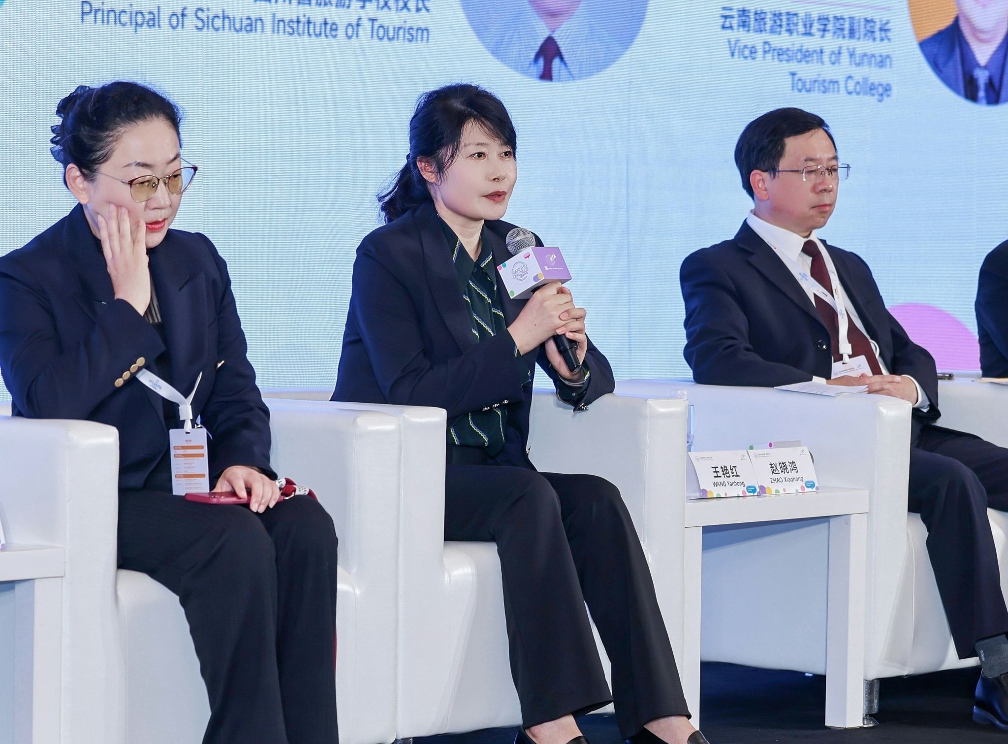 王艳红参加了主题为“旅游教育的产教融合与国际合作”圆桌对话,与其他参会嘉宾就如何深化校企合作、推动旅游教育国际化进行了热烈讨论。王艳红分享了pp电子在产教融合方面取得的成果,特别是pp电子与多家国内外知名企业建立的深度合作关系,为学生提供了丰富的实践机会和广阔的就业平台,同时提出了对未来旅游教育发展的几点建议,包括加强国际合作、优化课程设置、提高教学质量等,得到了与会者的广泛认同。