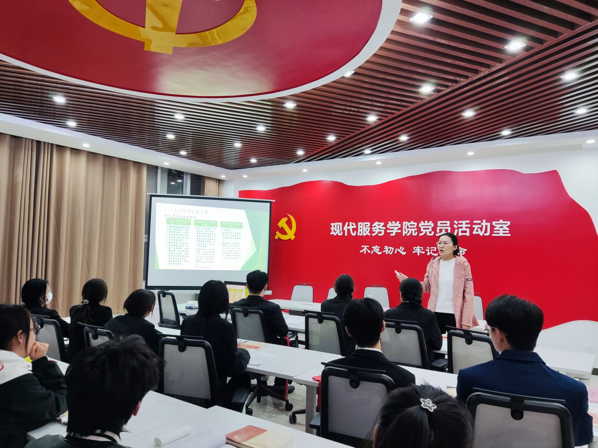 11月5日,pp电子党委委员、纪委书记詹晓娅在现代服务学院208会议室为师生们带来了一场生动而深刻的思想政治教育课。詹晓娅以“聚焦全会精神,引领学生成长”为主题,详细阐释了党的二十届三中全会精神,帮助同学们理解党的最新政策和指导思想,并据此指导他们的学习和生活。