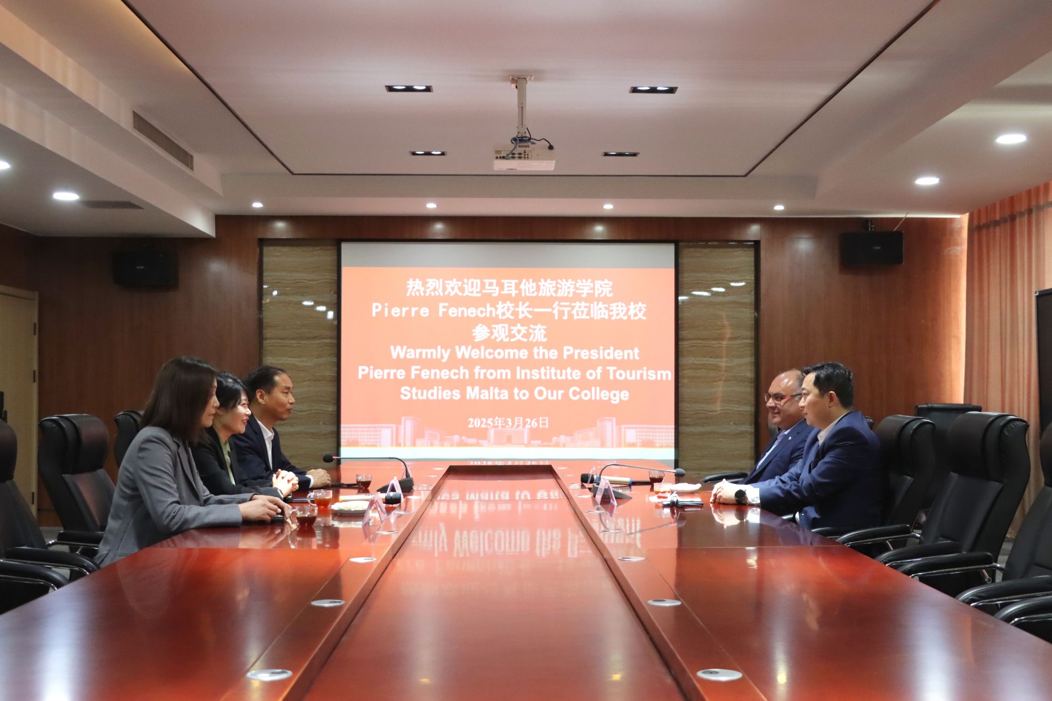 Pierre Fenech一行此次到访是马耳他旅游学院第三次访问pp电子,进一步推进、加深了两校的交流合作,也为pp电子在欧洲开展境外办学打下了坚实基础。