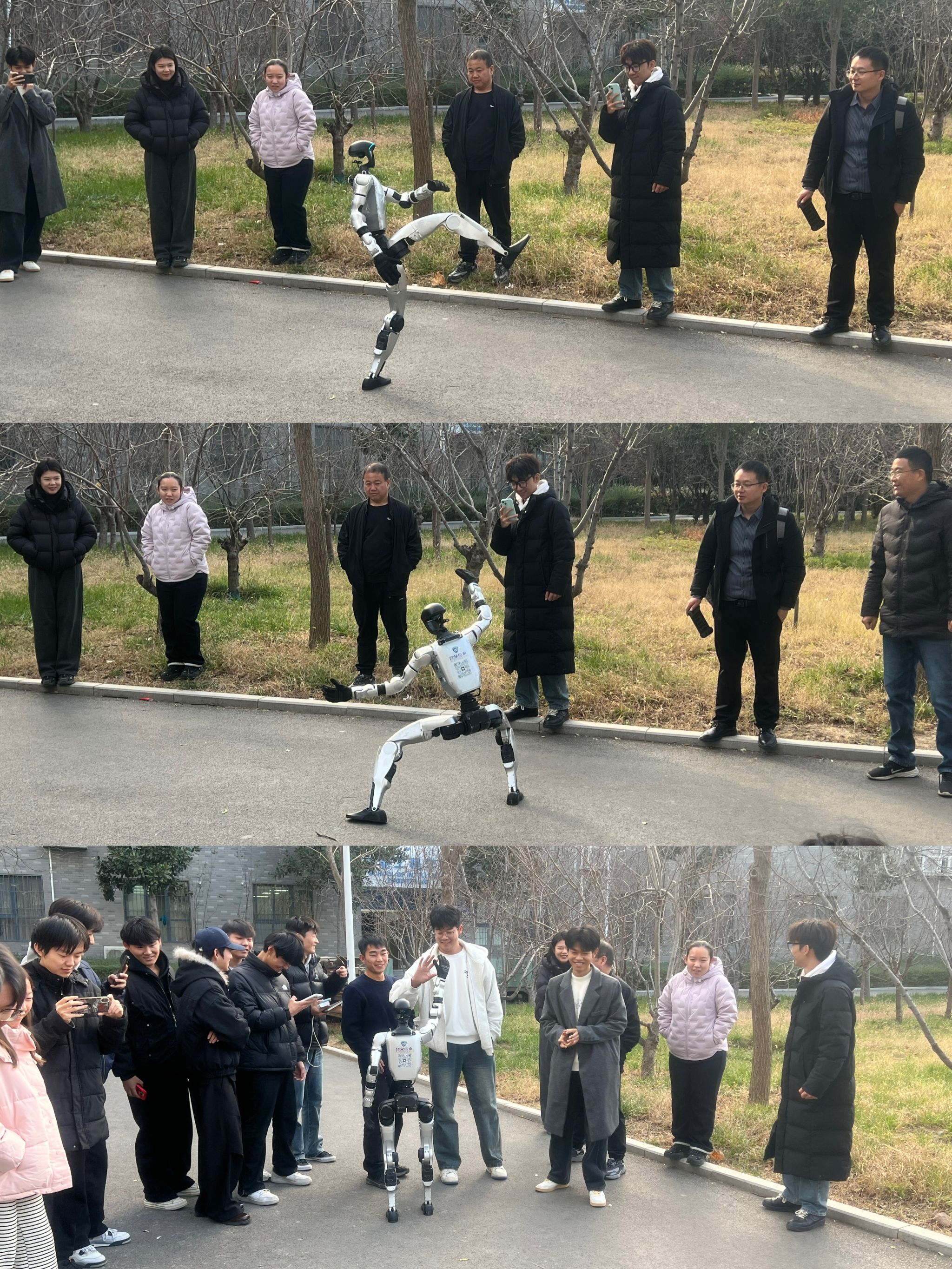 2025年12月2日,为提升智能工程学院学生的专业知识和科技素养,pp电子智能工程学院学生会组织了“科技零距离·机器人进校园”活动。在智能制造实训室,宇树智能机器人与学生互动交流,并展示了动感十足的现代舞、太极拳等节目。在教学楼,四足机器狗为大家展示了攀爬楼梯、灵活跳跃、负重前行等技能。在操场,人形机器人与大家比赛赛跑、踢足球、跳远等体育项目,引发了学生们的阵阵惊叹。