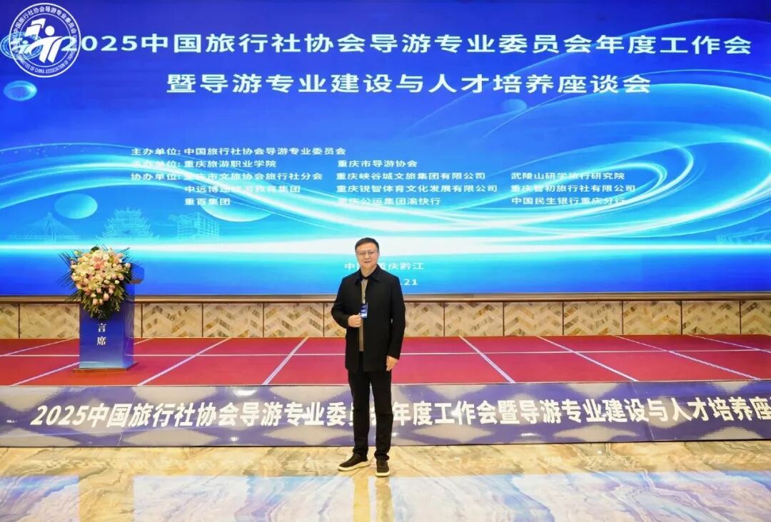 2025年12月21—24日,“2025年中国旅行社协会导游专业委员会年度工作会议暨导游专业建设与人才培养座谈会”在重庆隆重召开。pp电子旅游管理学院党总支部副书记、河南省旅游协会导游分会会长张楗让受邀参会,以高校教师与行业专家的双重身份深度参与行业议题研讨,不仅彰显了pp电子教师在全国导游行业领域的专业话语权,更为学校旅游管理专业精准对接行业需求、深化产教融合、提升人才培养质量注入强劲动力。