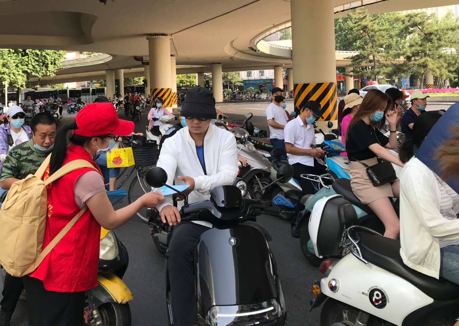 上午8点钟,志愿者小组成员在郑州紫荆山地铁站准时集合分发任务。活动中,志愿者们向行人发放“一盔一带”交通安全宣传材料,讲解佩戴头盔、系好安全带的重要性;并协助交警对现场闯红灯行驶、逆向行驶、不走非机动车道、骑车时接打电话等交通违法行为和不按规定佩戴安全头盔者进行交通安全知识宣传教育,引导大家做文明交通的参与者、践行者。
