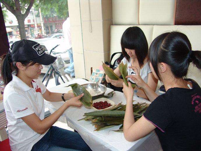18级电子商务2班学生和家人一起包粽子