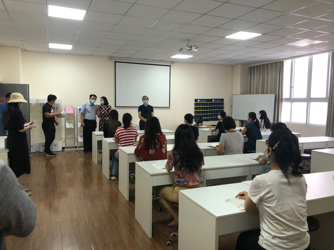 演练前,副院长李俊带领全体教师召开疫情防控演练培训会。会上李俊强调防疫流程,明确任务分工与实施步骤,并带领大家学习《校园疫情防控学习手册》。