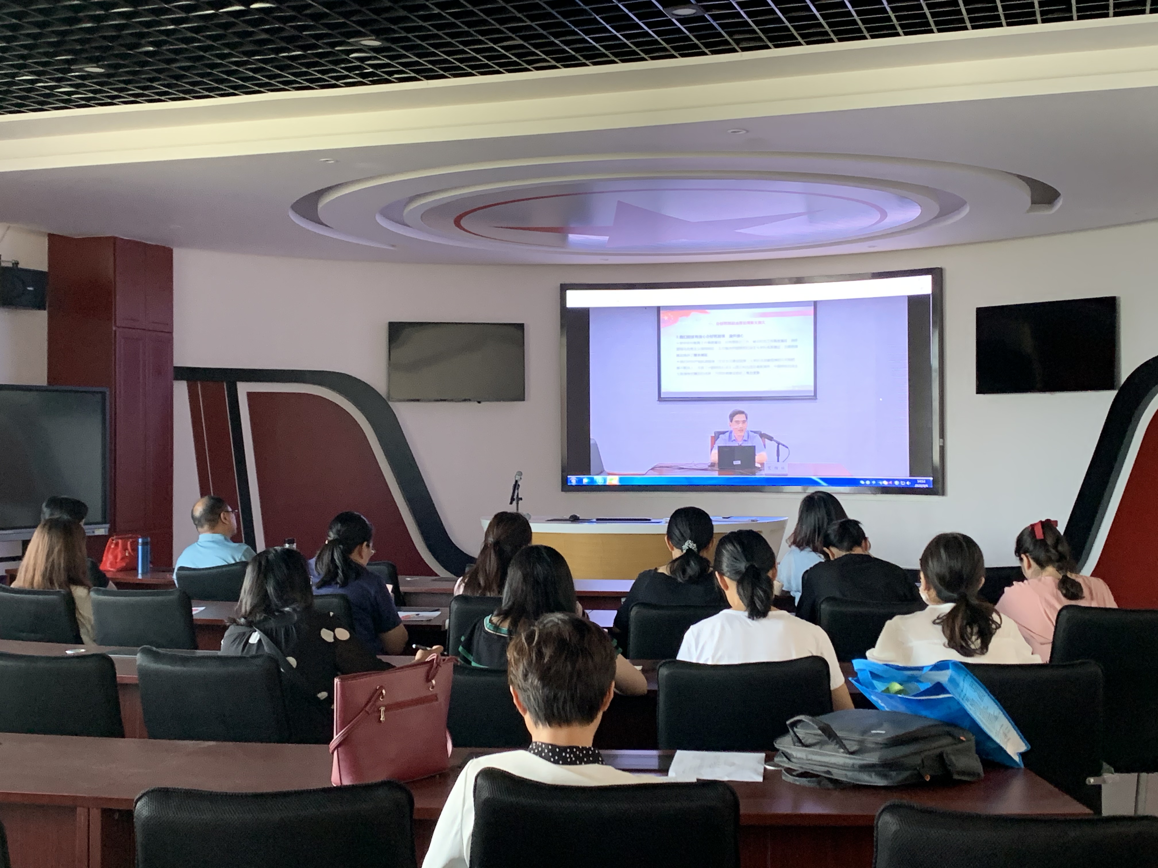 9月4日下午,思政部全体教师在马克思主义中国化实训室收看清华大学马克思主义学院院长艾四林教授讲授的“周末理论大讲堂”课程。