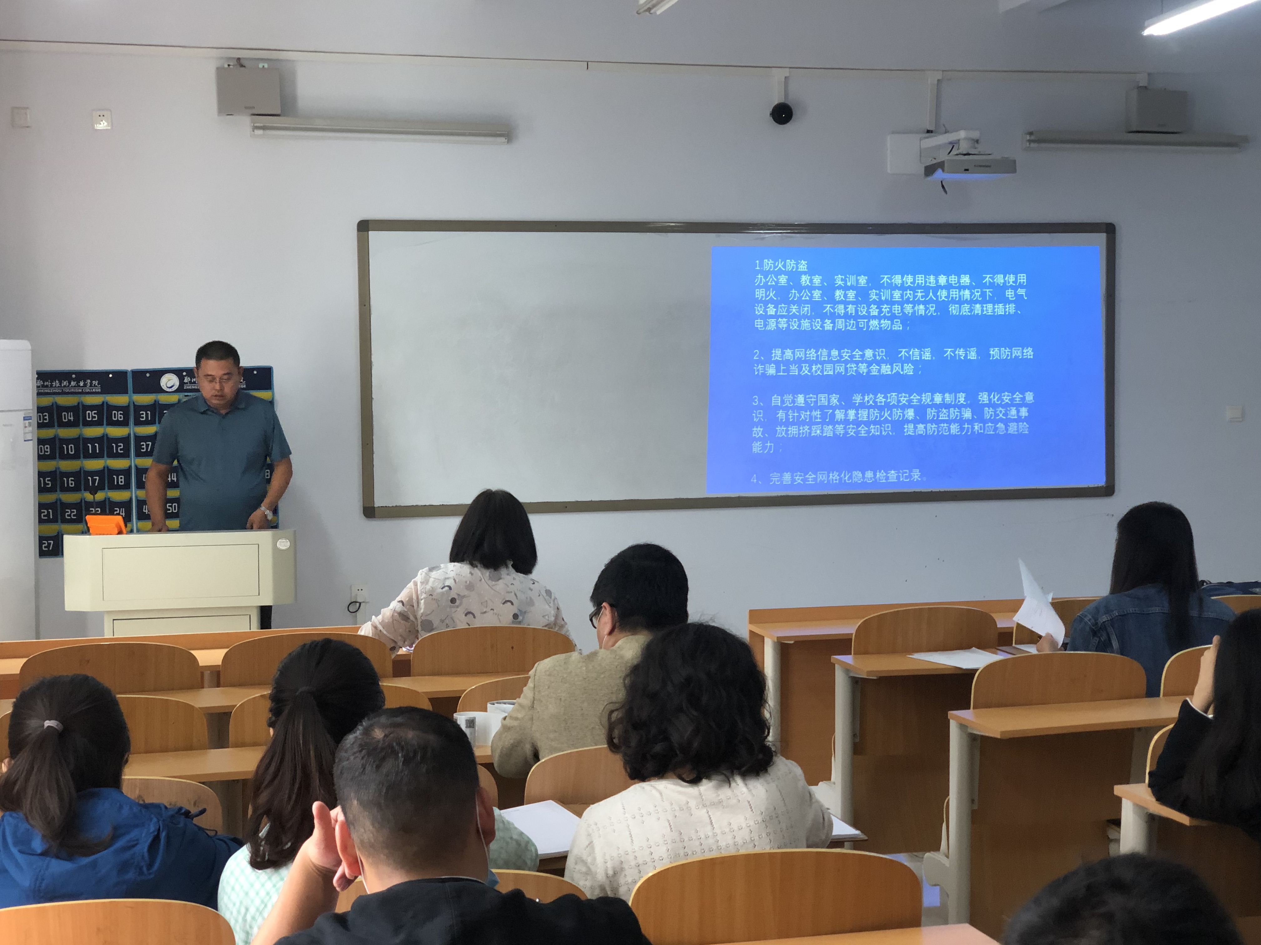 会上,徐永清从政治高度为切入点,先后列举了航空港综合试验区社会公共管理办公室原主任赵国玺、荥阳市乔楼镇卢晓炜等人违反中央八项规定精神和廉洁纪律的典型案例,对全体参会人员进行了深刻的警示教育。徐永清强调:在双节来临之际,全体党员干部更要加强廉政建设,把讲政治放在首位,时刻以党员干部行为准则要求自己,保持头脑清醒,始终筑牢廉洁自律的思想防线;作为党员教师更要起模范带头作用,在政治上求高度、在业务上求先进,以案促改、以案促防。
