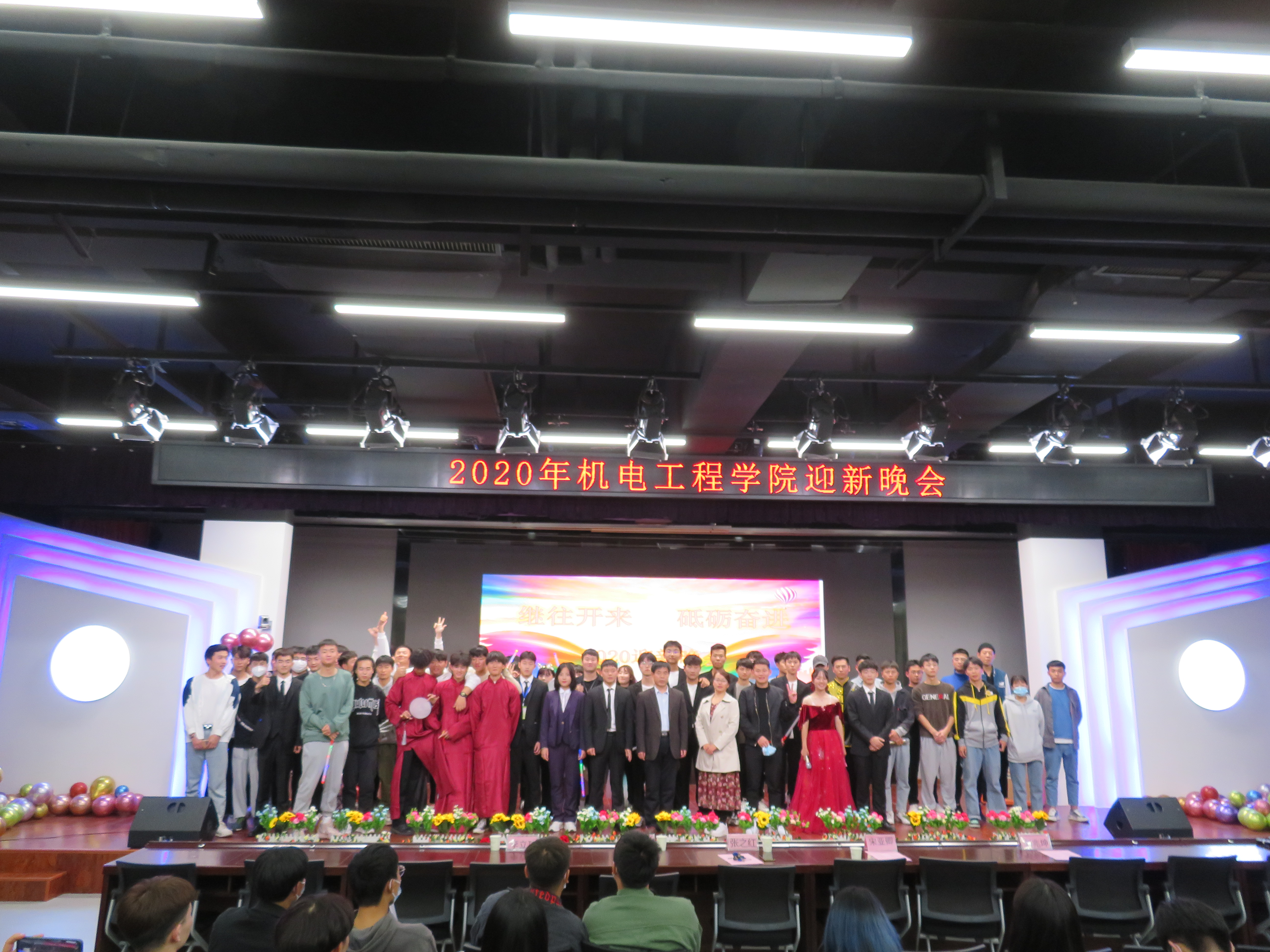 为迎接2020级新生的到来,展现机电工程学院学子风采,11月9日17时,机电工程学院“继往开来、砥砺奋进”迎新晚会在pp电子综合楼B座演播中心举行。校团委书记李立功、学校学生处副处长宋亚卿、现代服务学院副主任刘兆坤以及学院院长张之红、党总支书记段伟与学院新生共同观看迎新晚会。晚会由机电工程学院团总支主办、学生会承办。