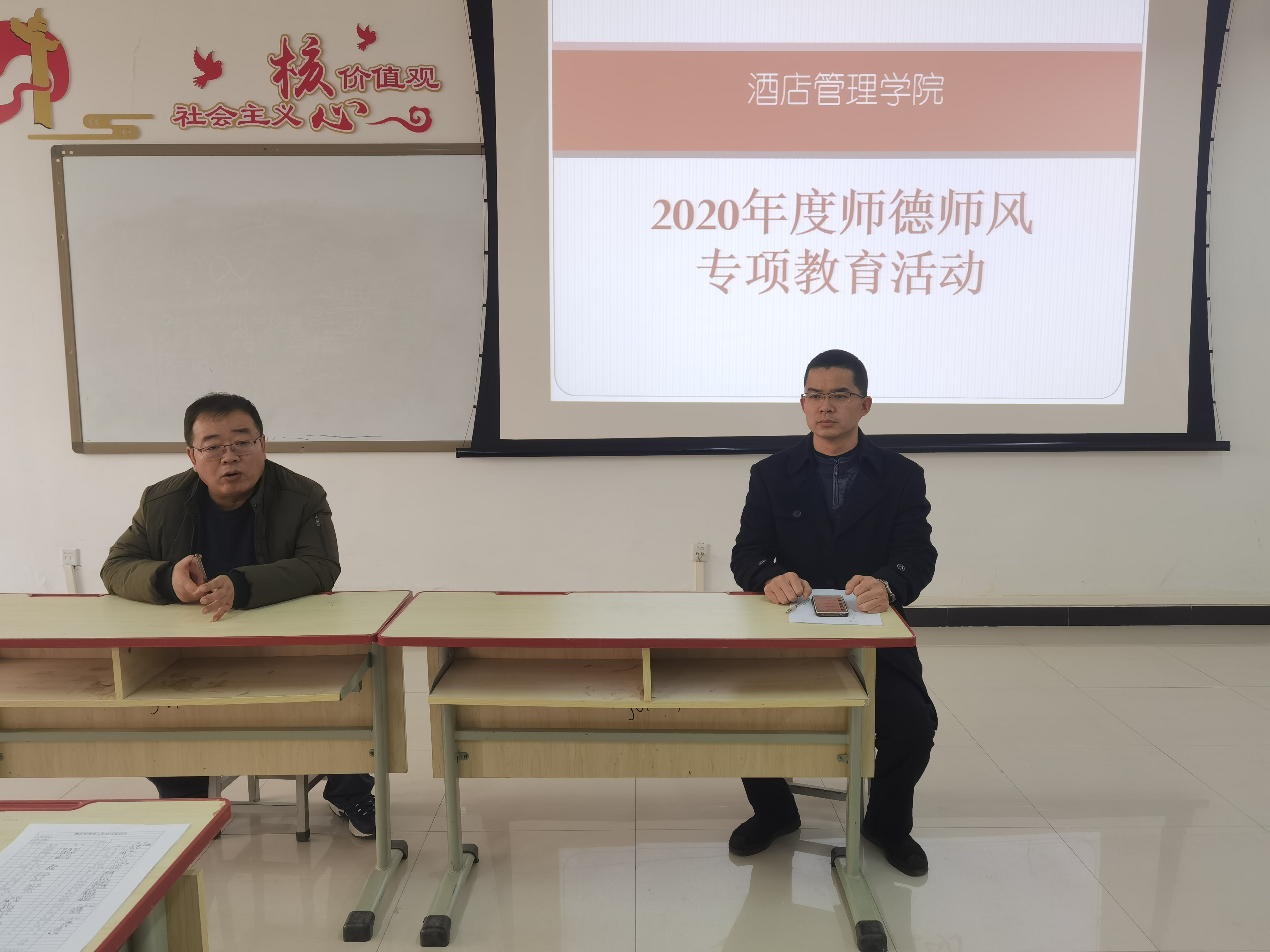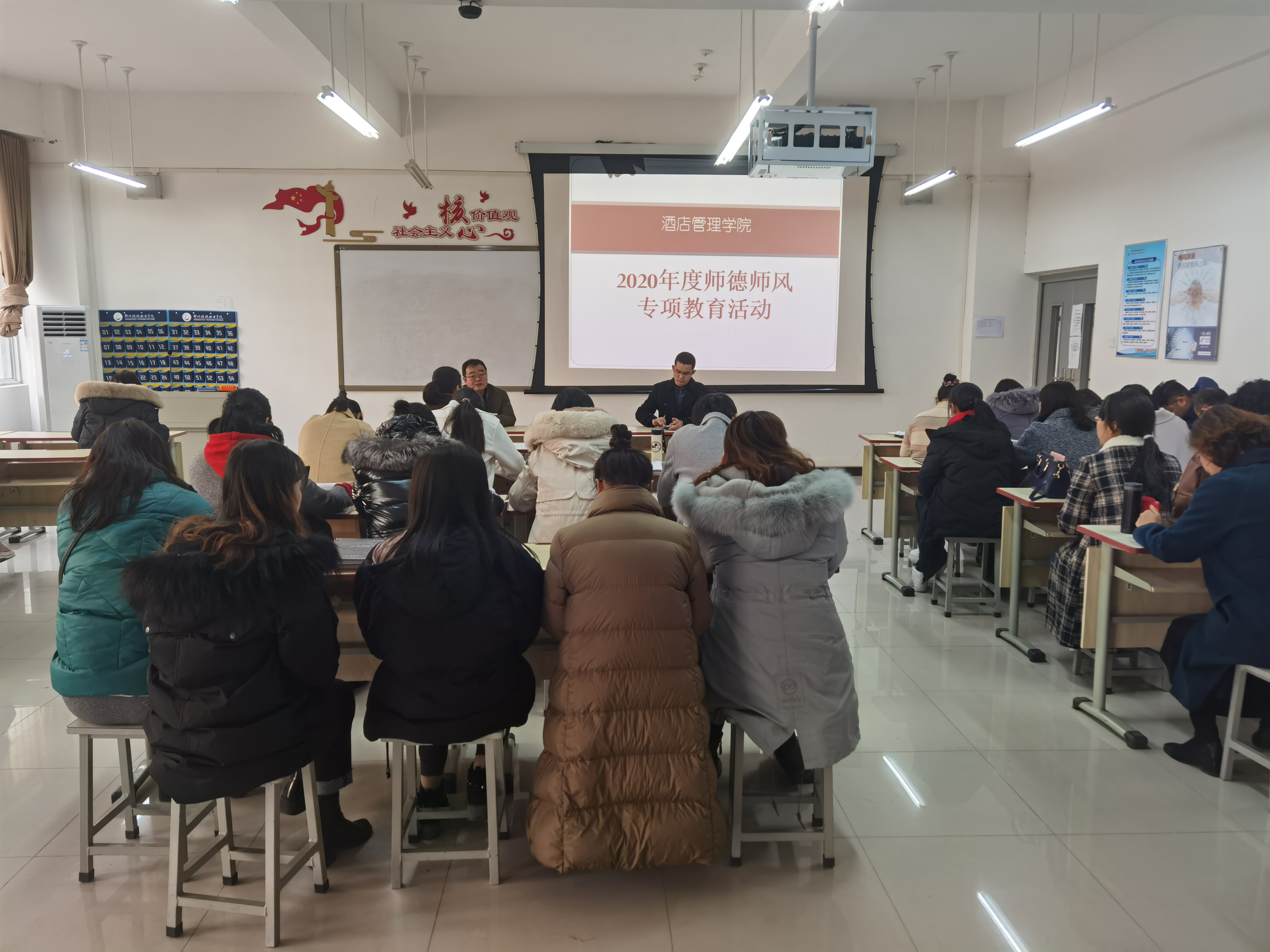 12月9日下午,酒店管理学院在2B102教室开展全院教职工师德师风专题教育活动。会议由陈海彬书记主持,李晓东院长及全体老师参加了会议。